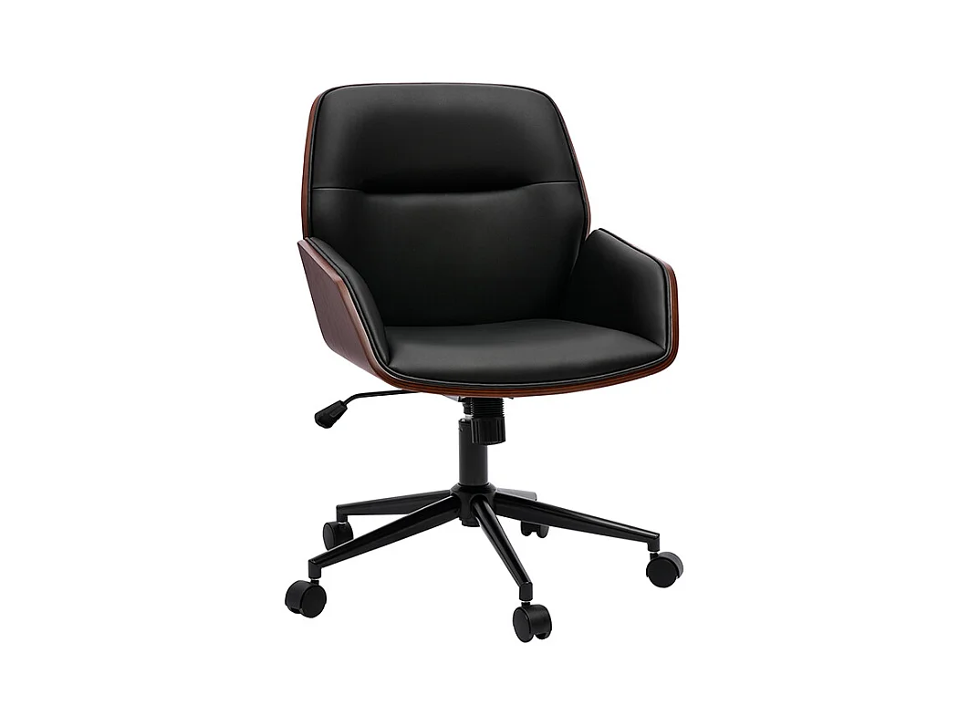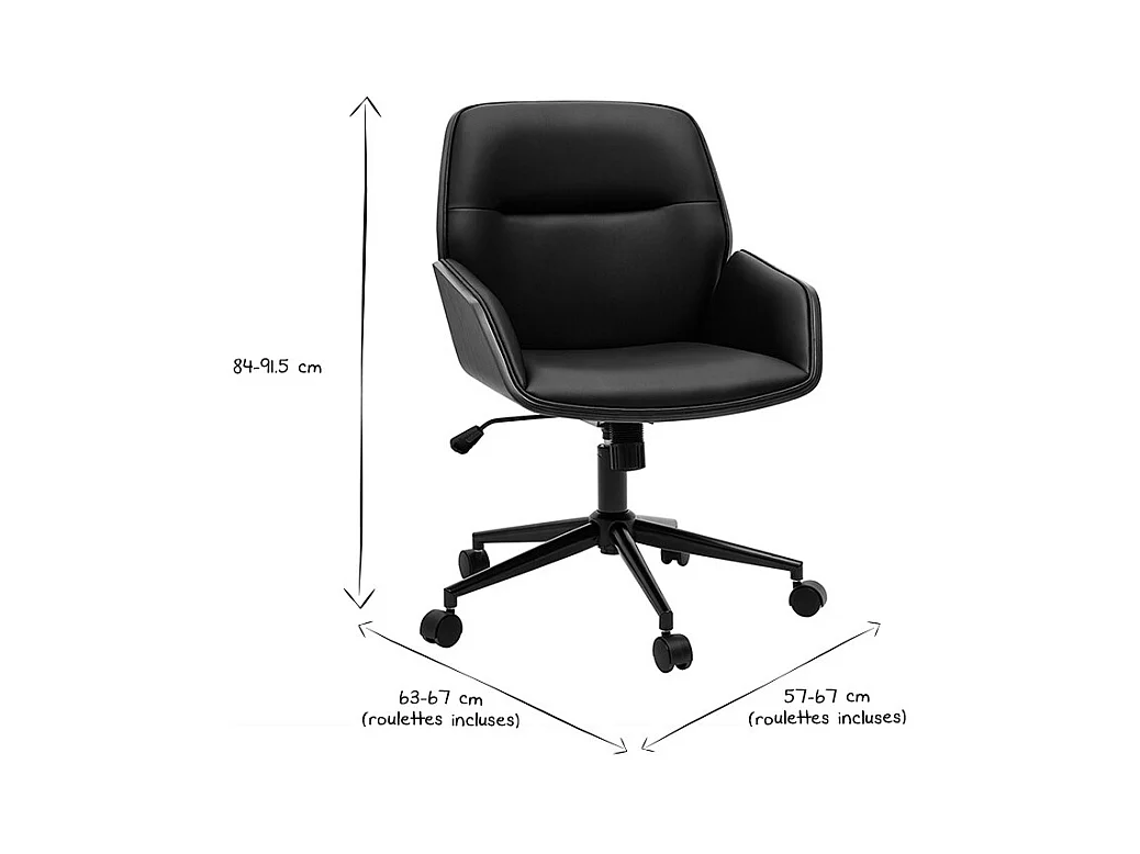 Schwarzer Design-Bürostuhl mit Rollen, dunkles Holz und schwarzes Metall MARLOW