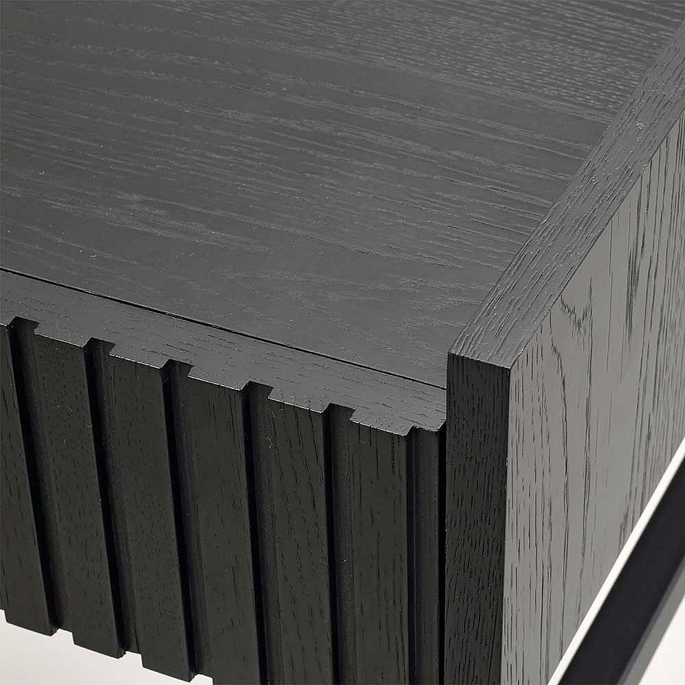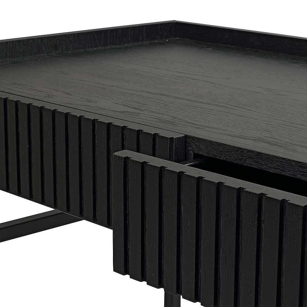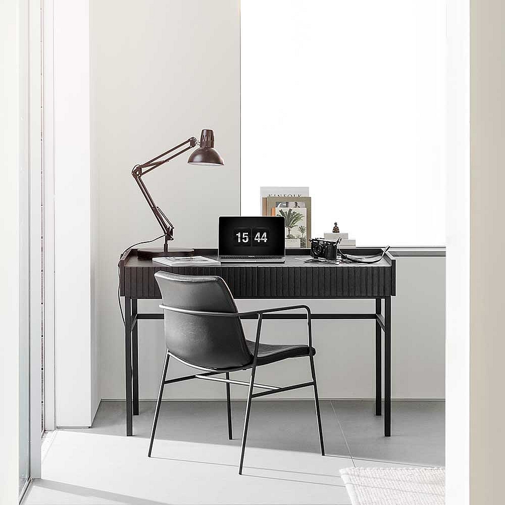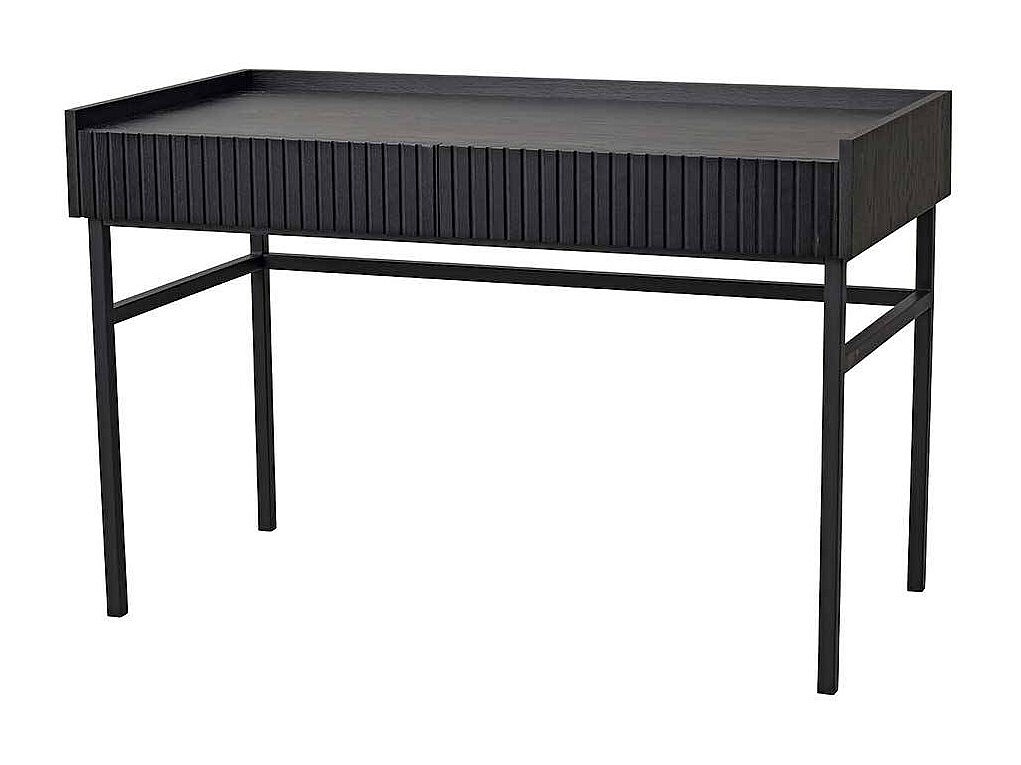 Schwarzer Designschreibtisch mit zwei Schubladen Vierfu�gestell aus Metall