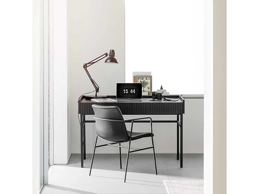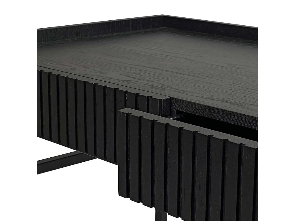 Schwarzer Designschreibtisch mit zwei Schubladen Vierfußgestell aus Metall