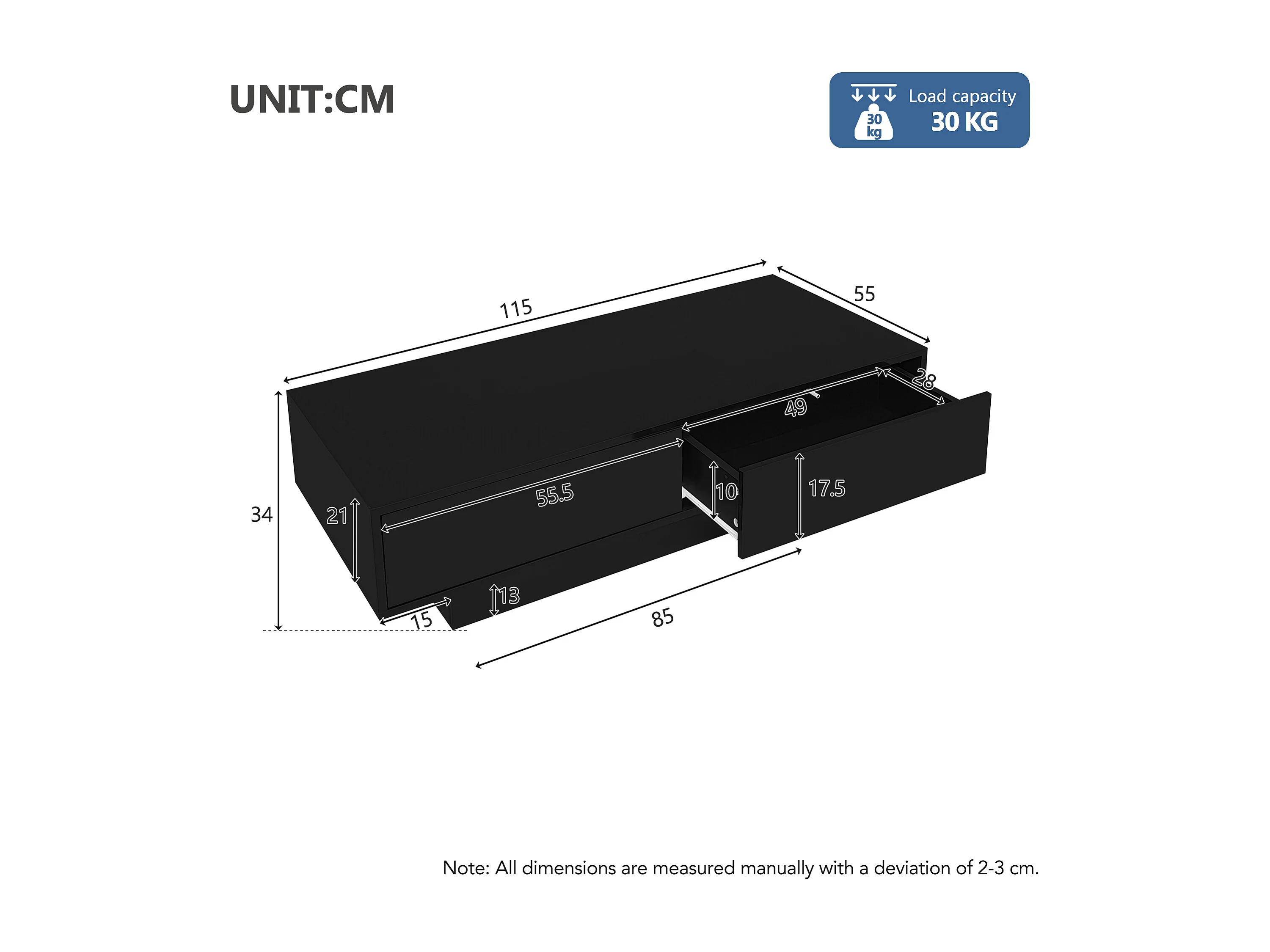 Schwarzer Hochglanz-Couchtisch mit 2 Aufbewahrungsschubladen und LED-Beleuchtung – Für Wohnzimmer