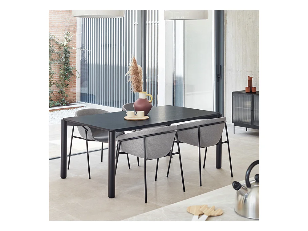 Schwarzer Holztisch für 6 Personen, 180 x 100 cm