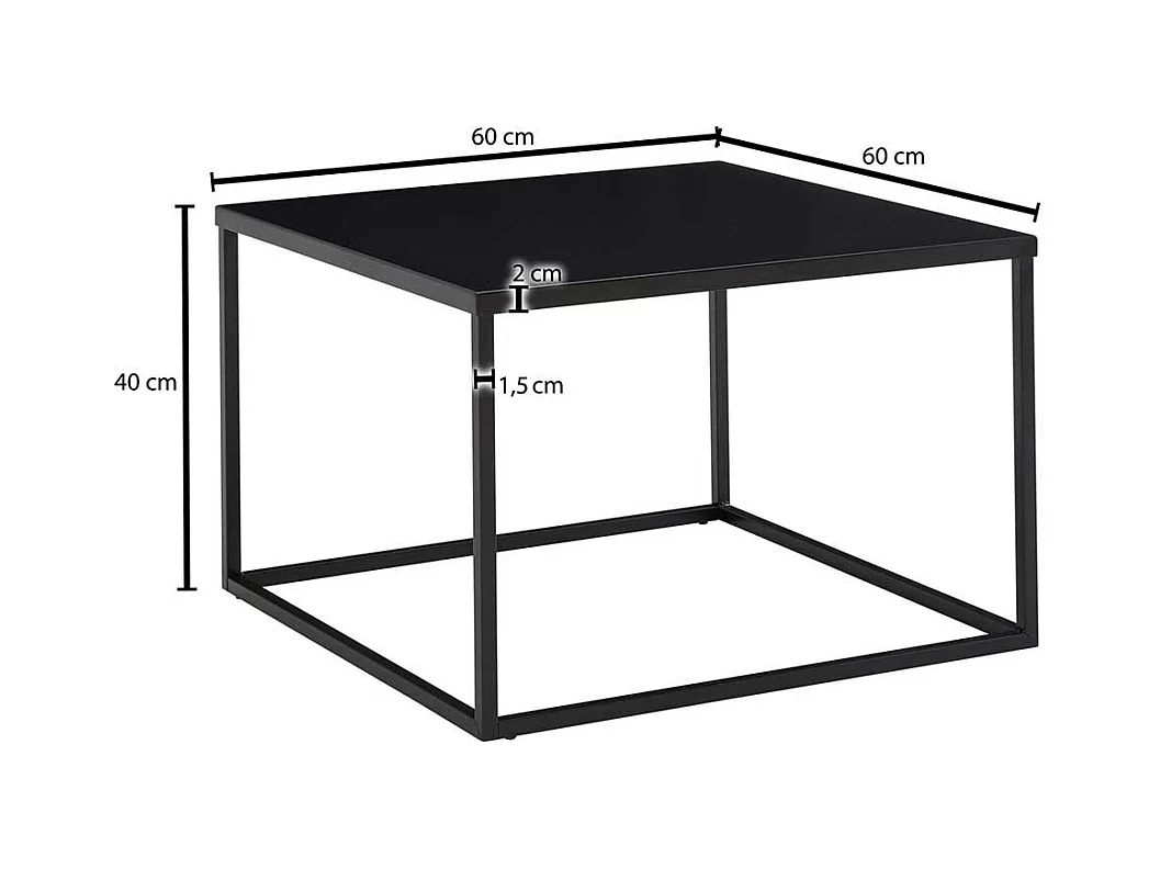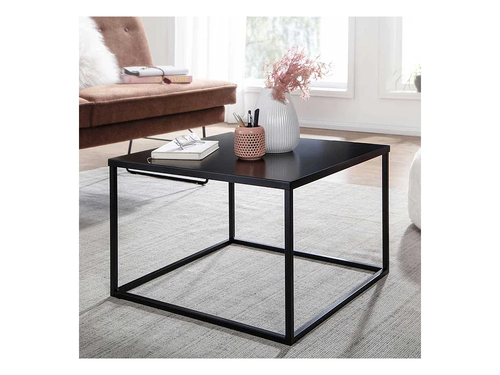 Schwarzer Sofatisch im Industrie und Loft Stil quadratischer Tischplatte