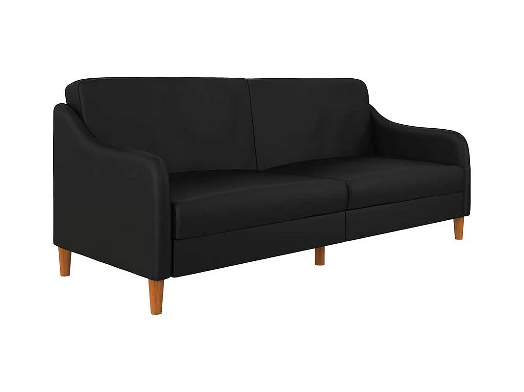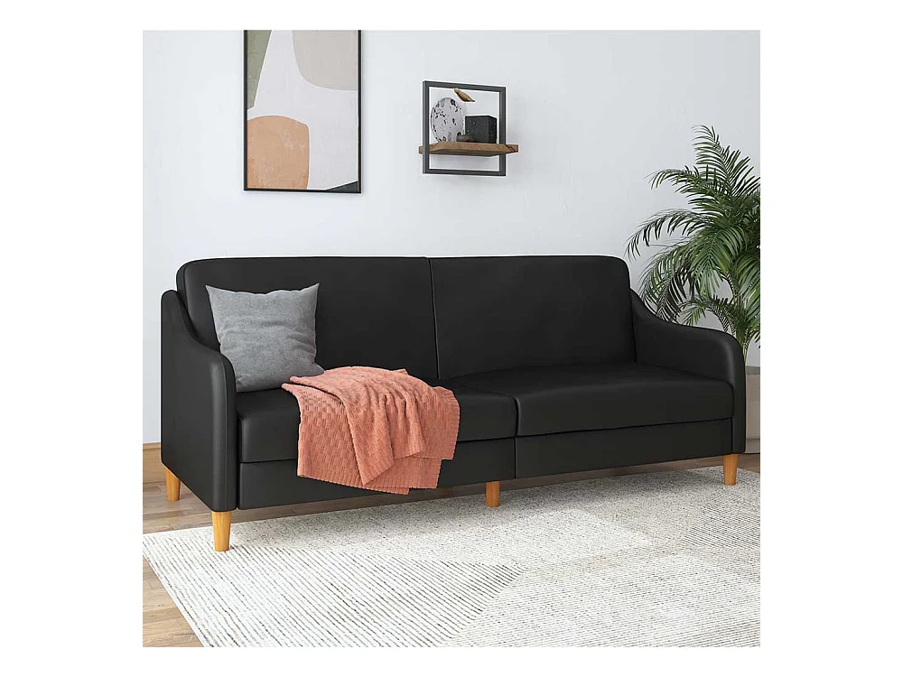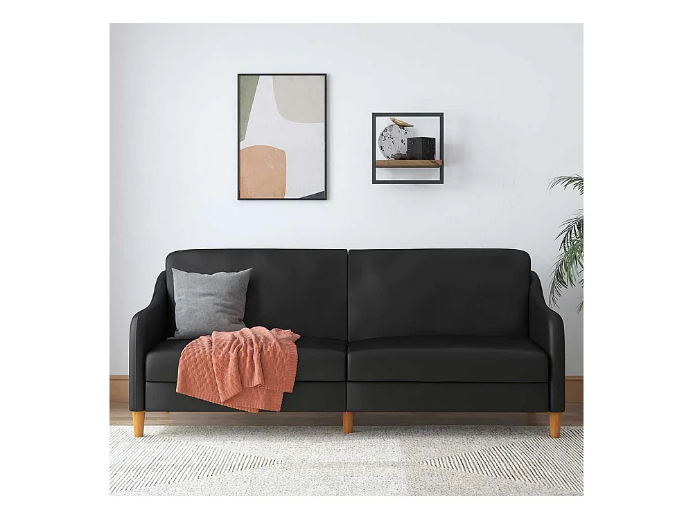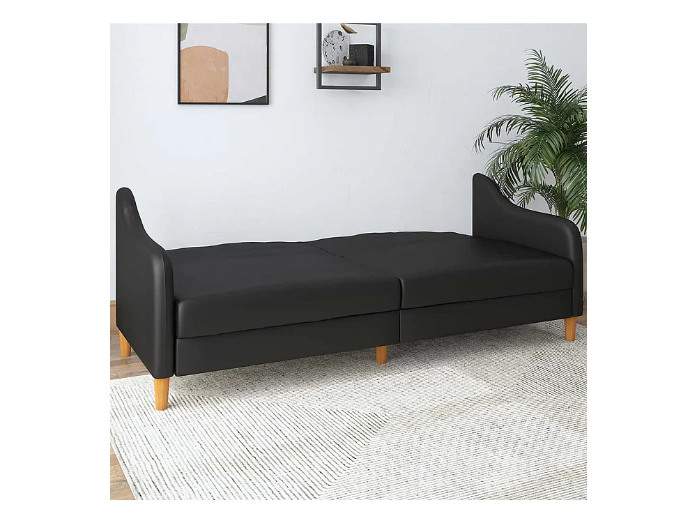 Schwarzes Kunstleder Sofa mit Schlaffunktion 195 cm breit