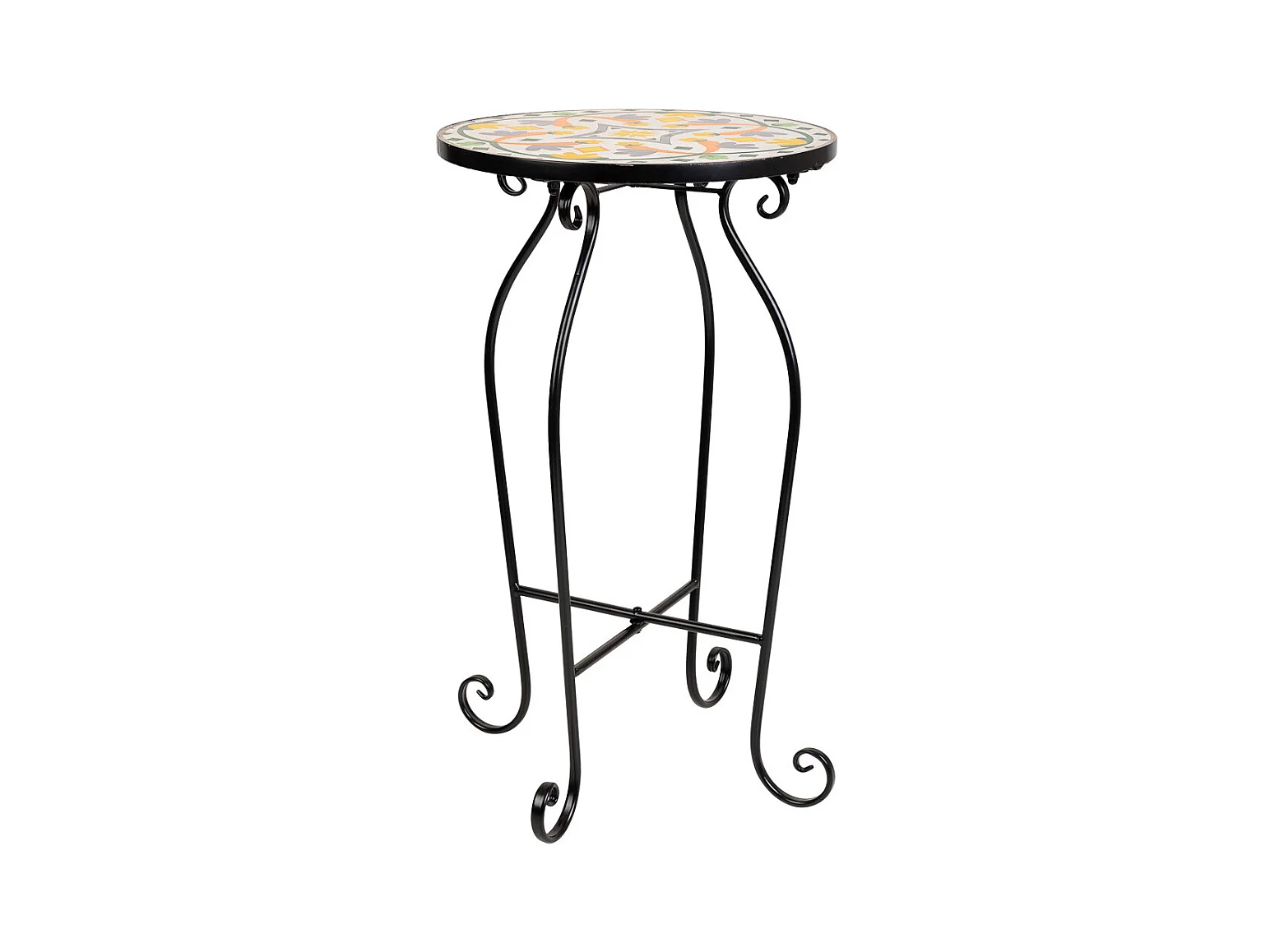 Schwarzes Mosaik und schmiedeeiserne Stütze D35x60h cm