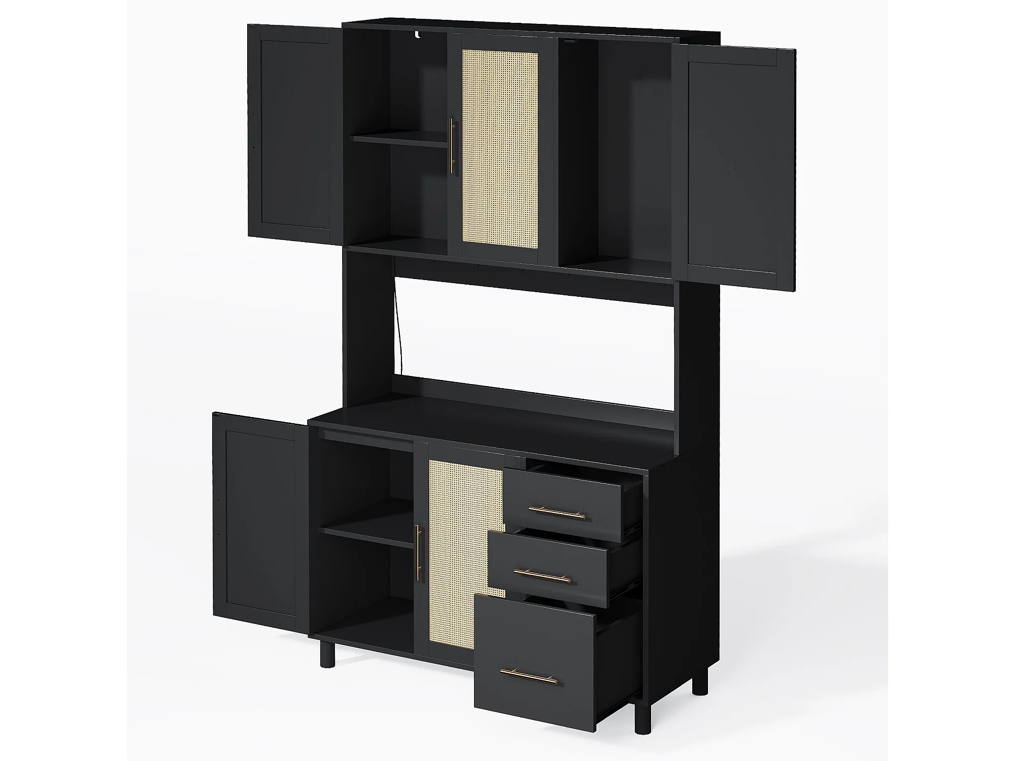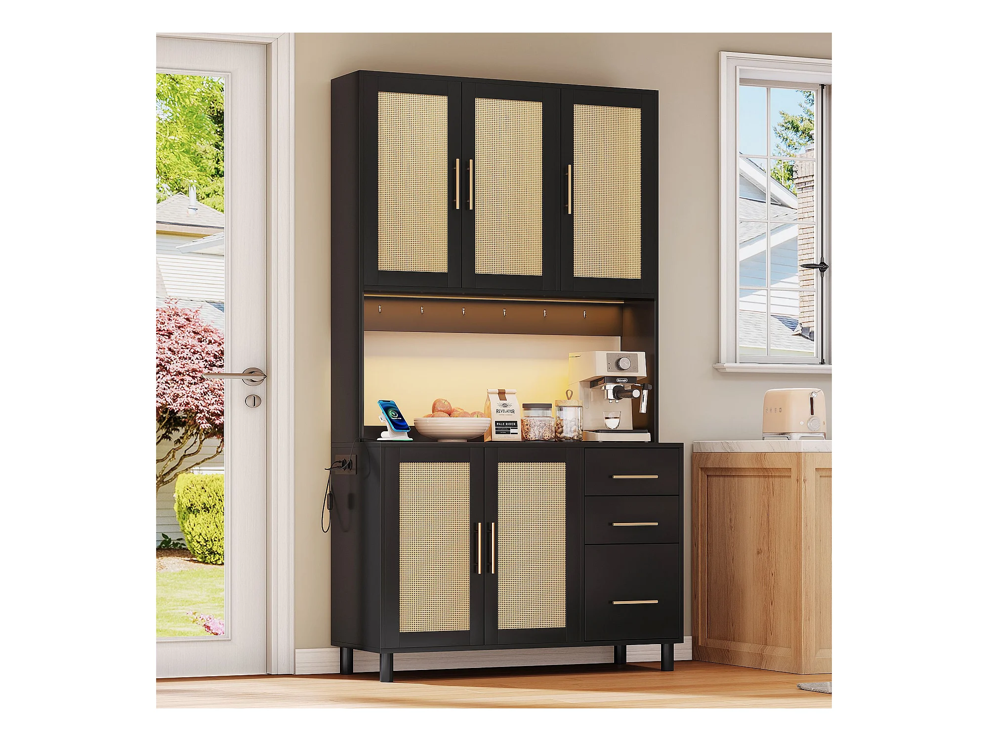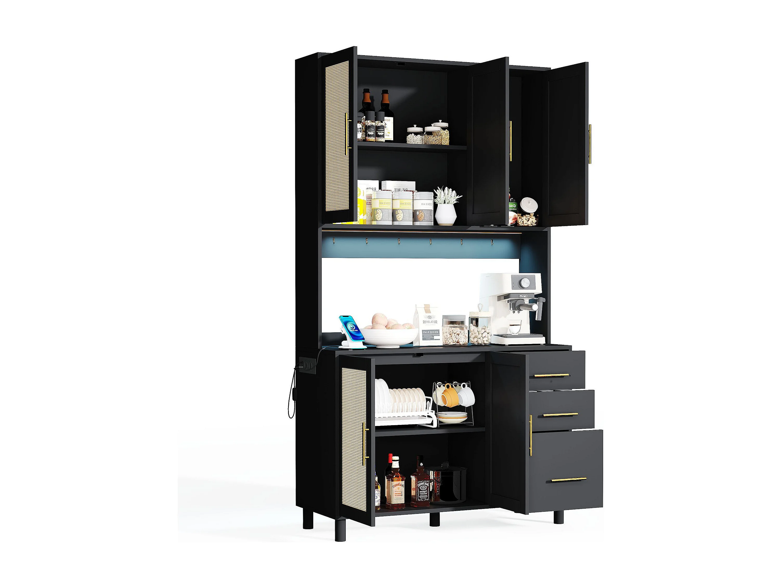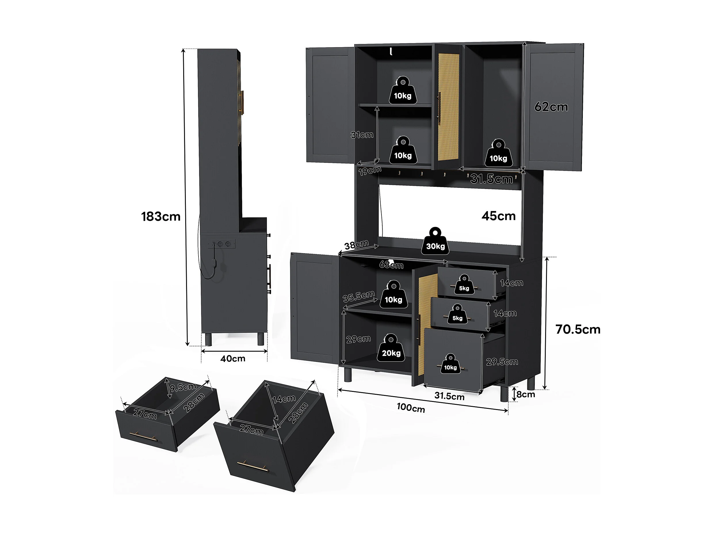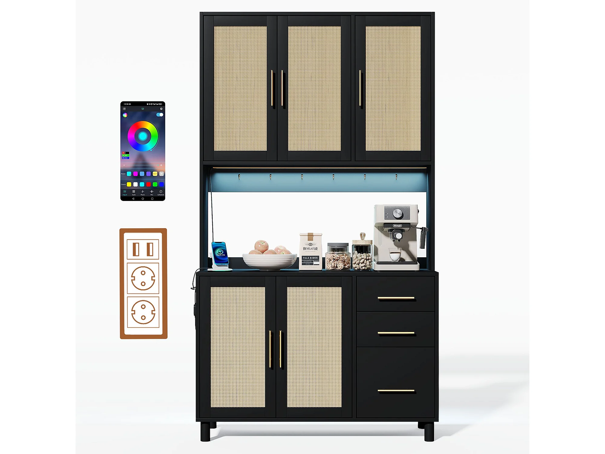 Schwarzes Sideboard – Sideboard mit 3 Schubladen und 5 Türen – verstellbare regale und USB-ladefunktion – für esszimmer
