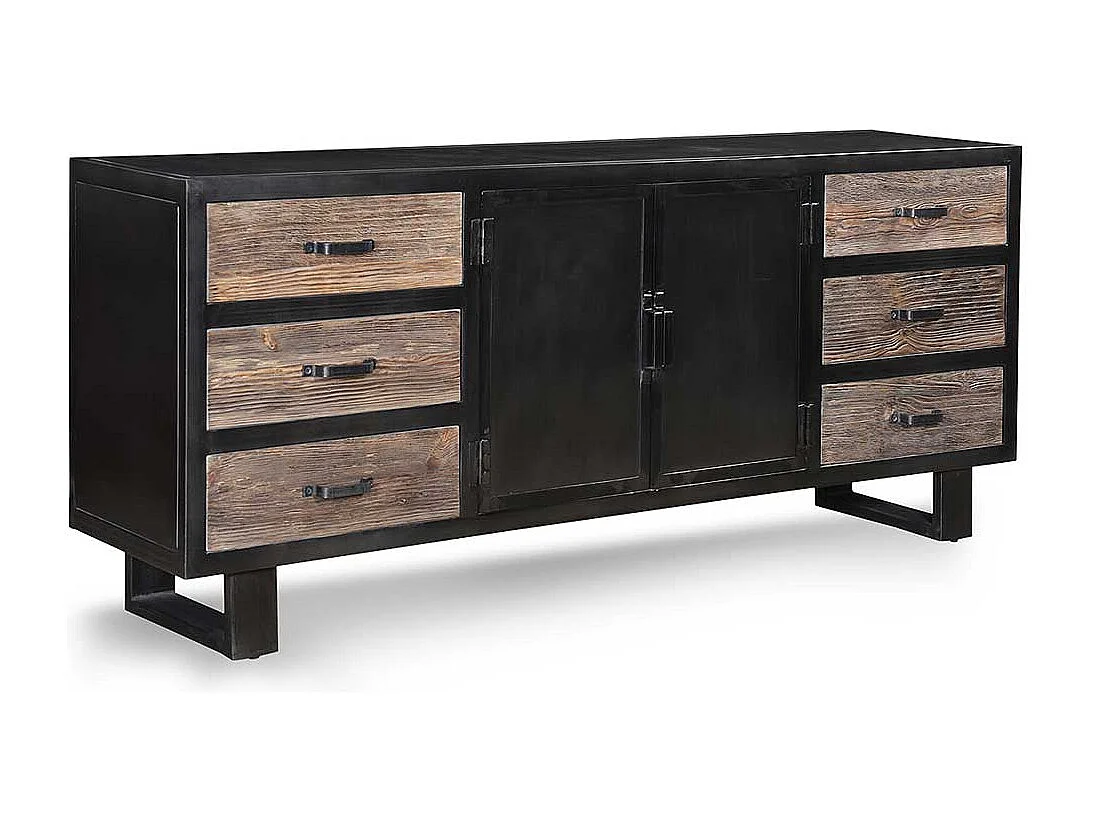 Schwarzes Sidebord 2 türig sechs Schubladen