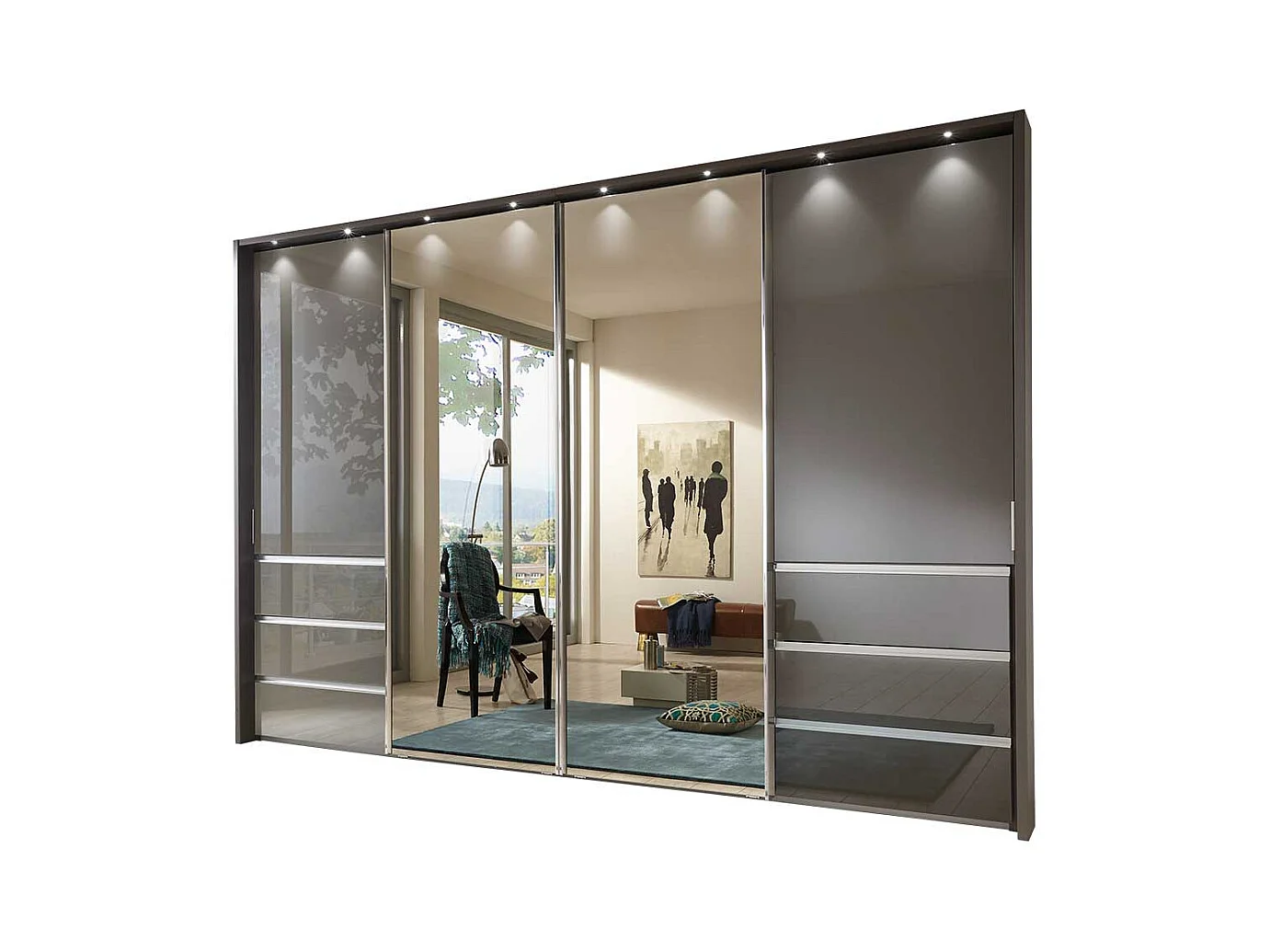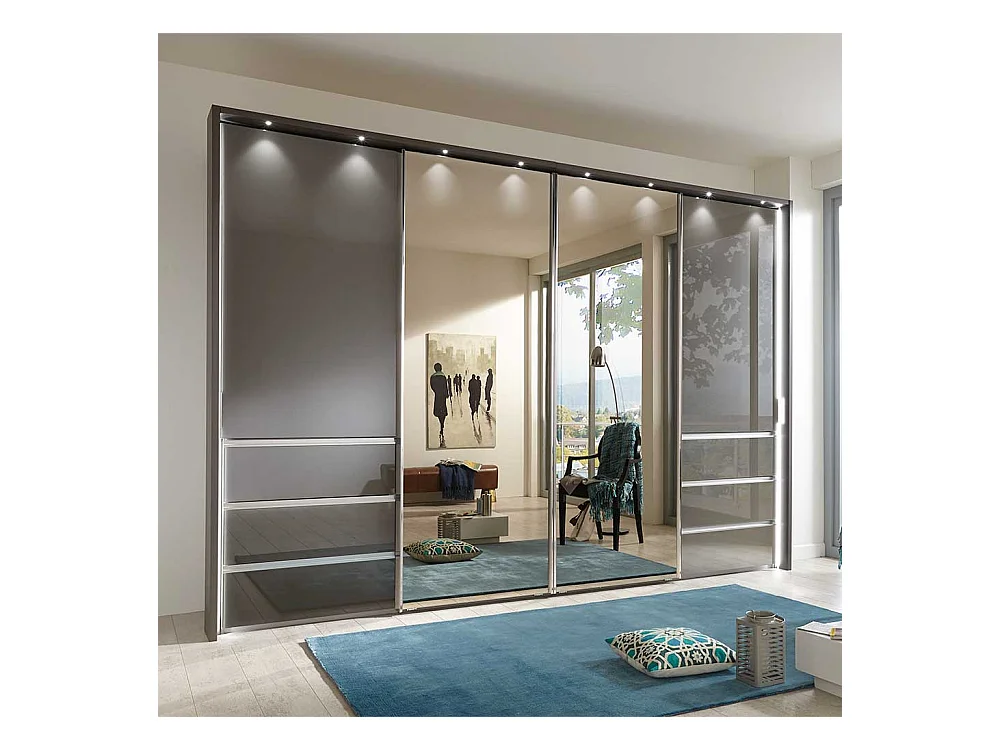 Schwebetüren Kleiderschrank in Braun Spiegel