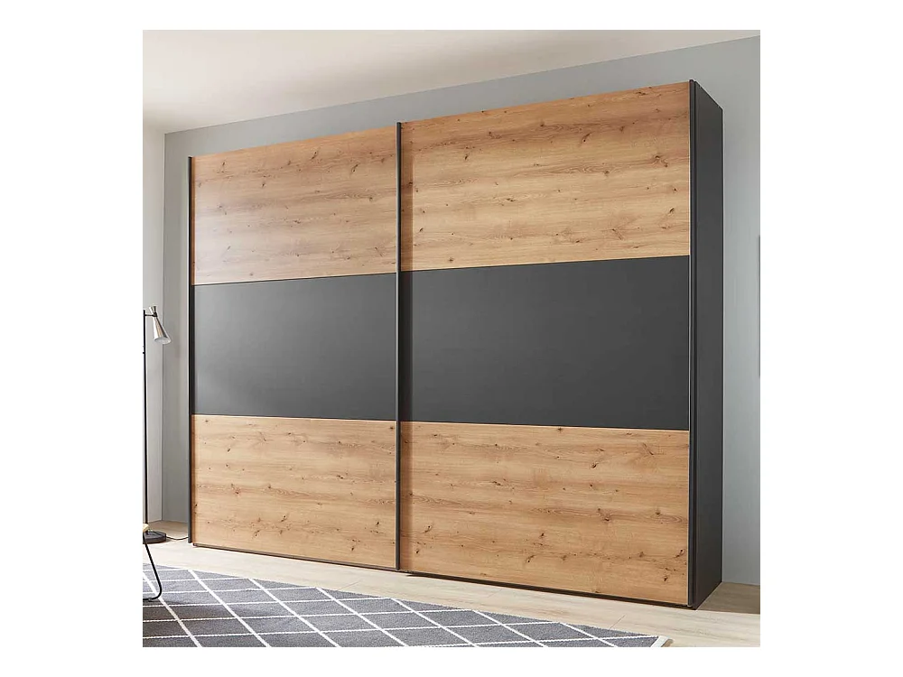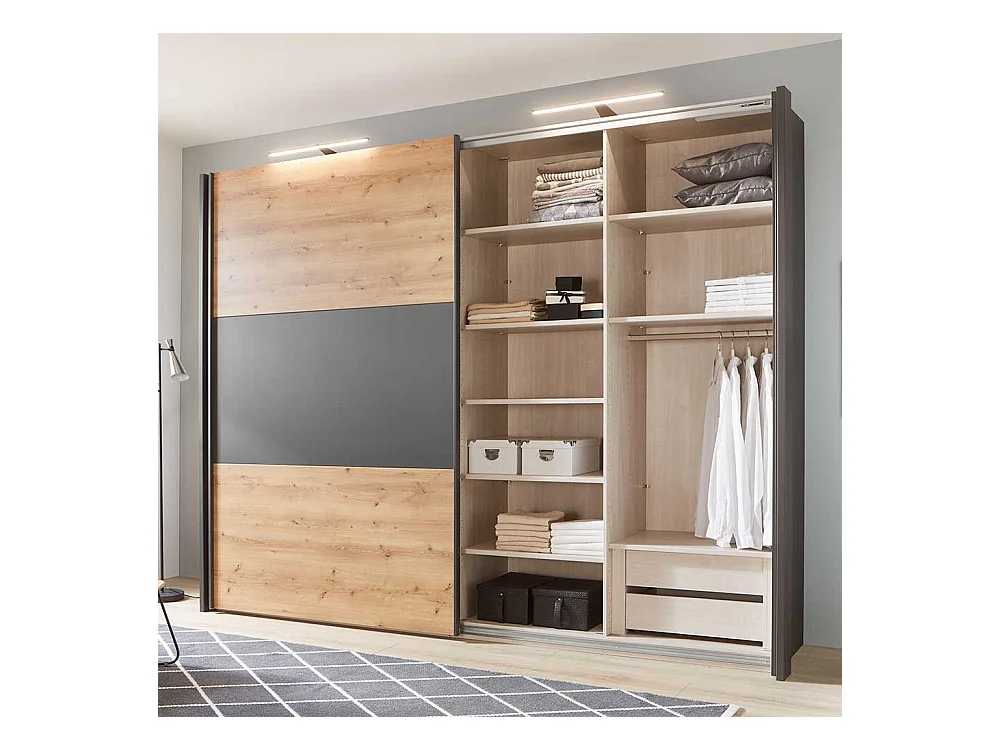 Schwebetüren Kleiderschrank in Eiche Bianco und Anthrazit Made in Germany