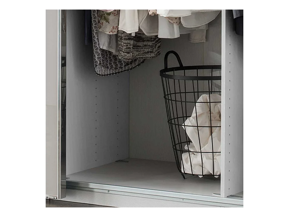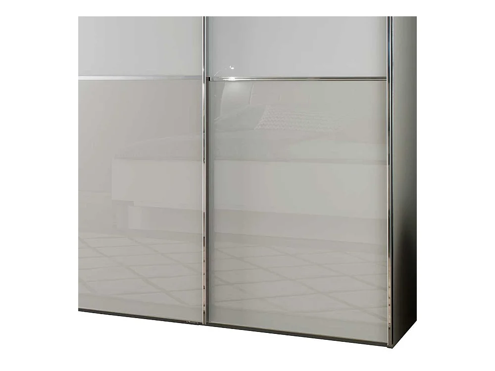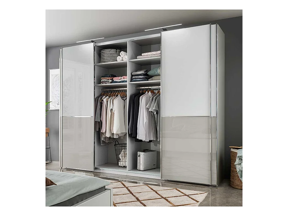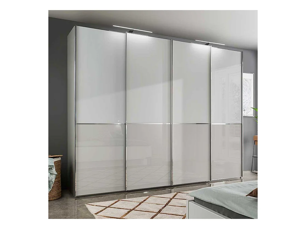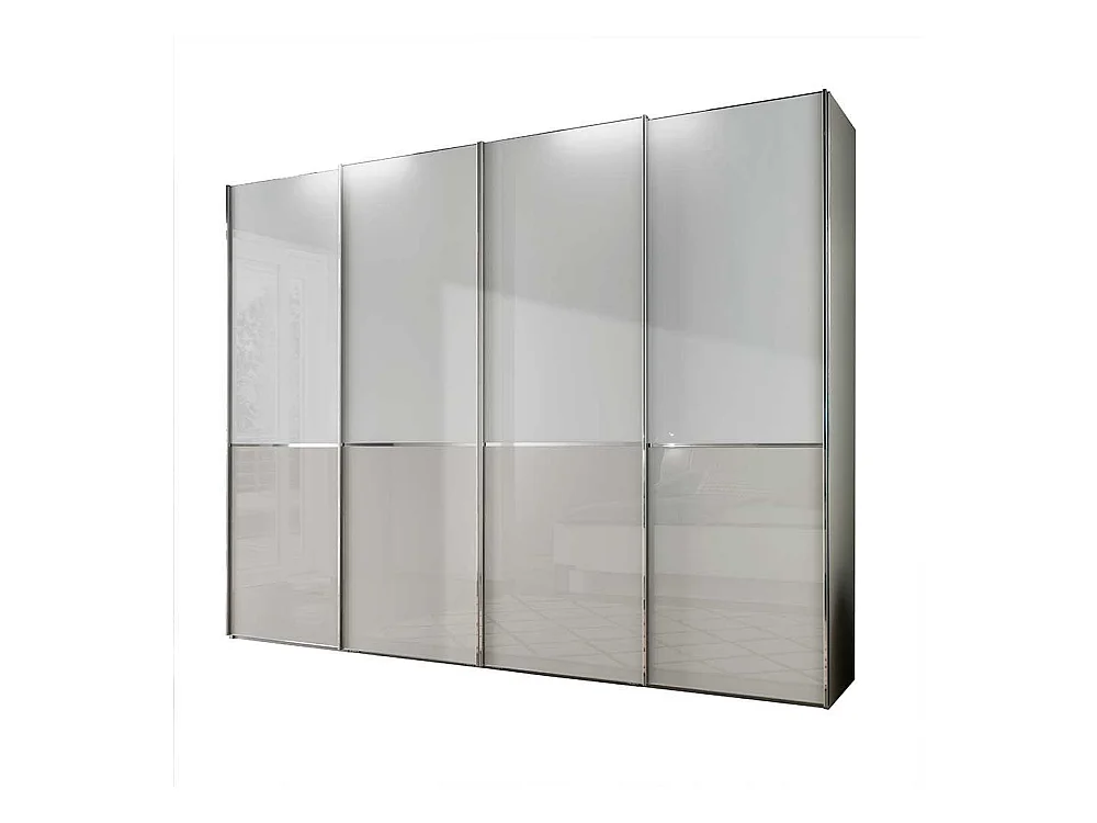 Schwebetürenkleiderschrank 4-türig Weiß und Hellgrau mit Glas beschichtet