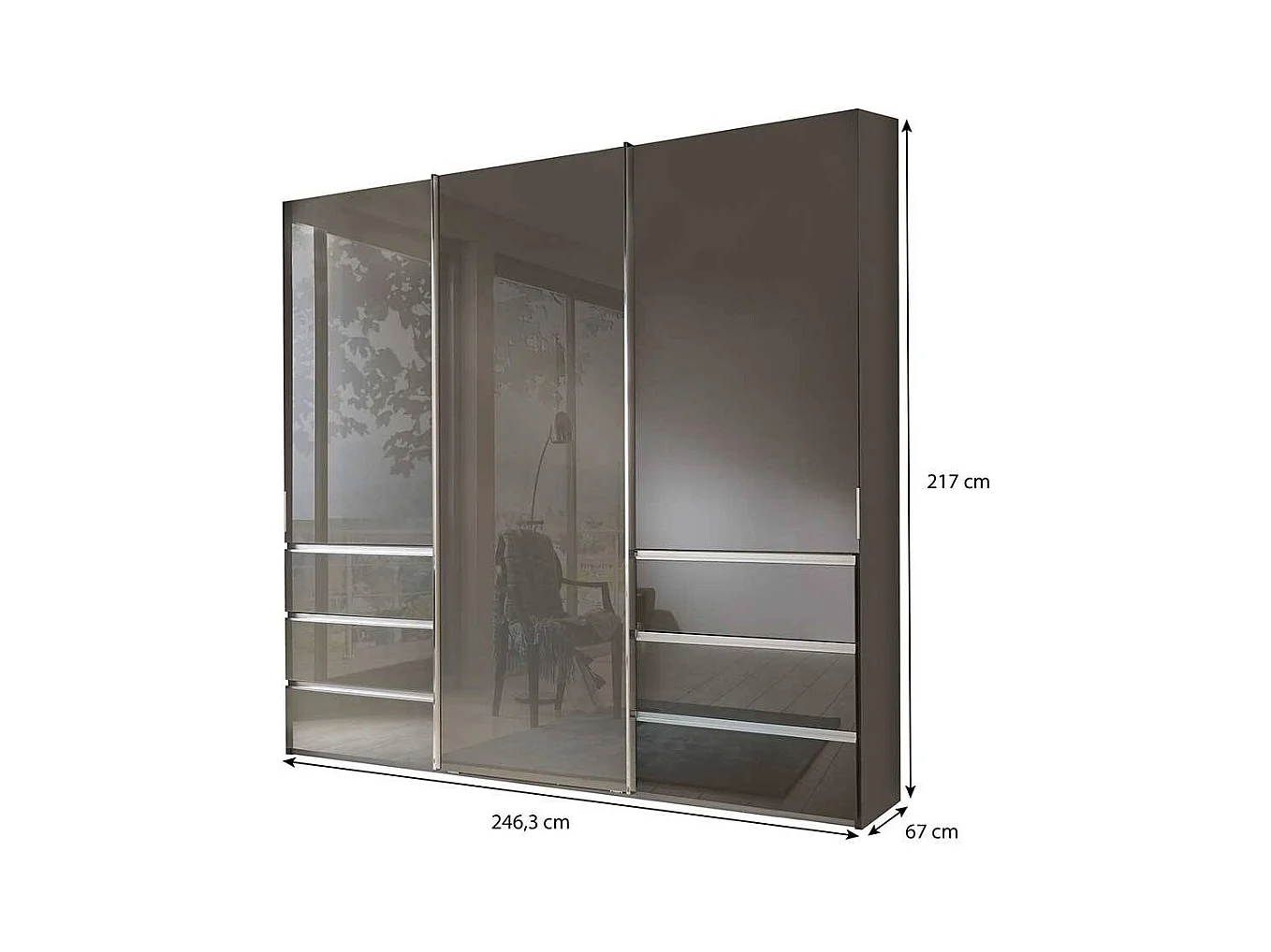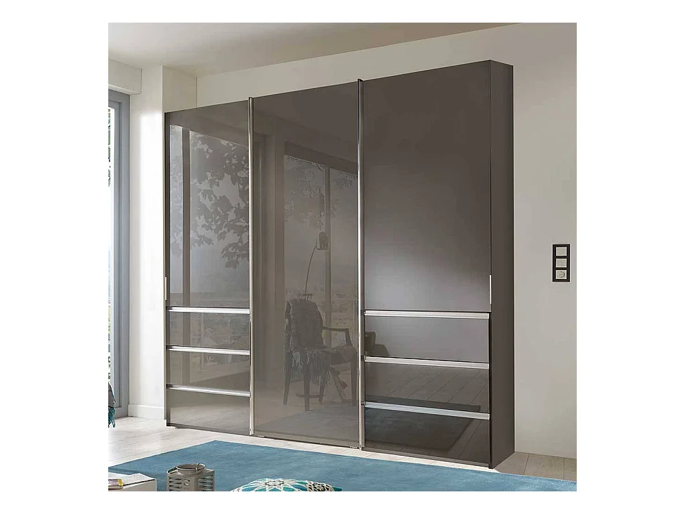 Schwebetürenkleiderschrank braun glasbeschichtet sechs Schubladen