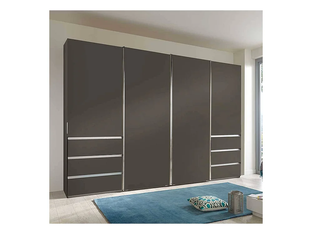 Schwebetürenkleiderschrank in Braun sechs Schubladen