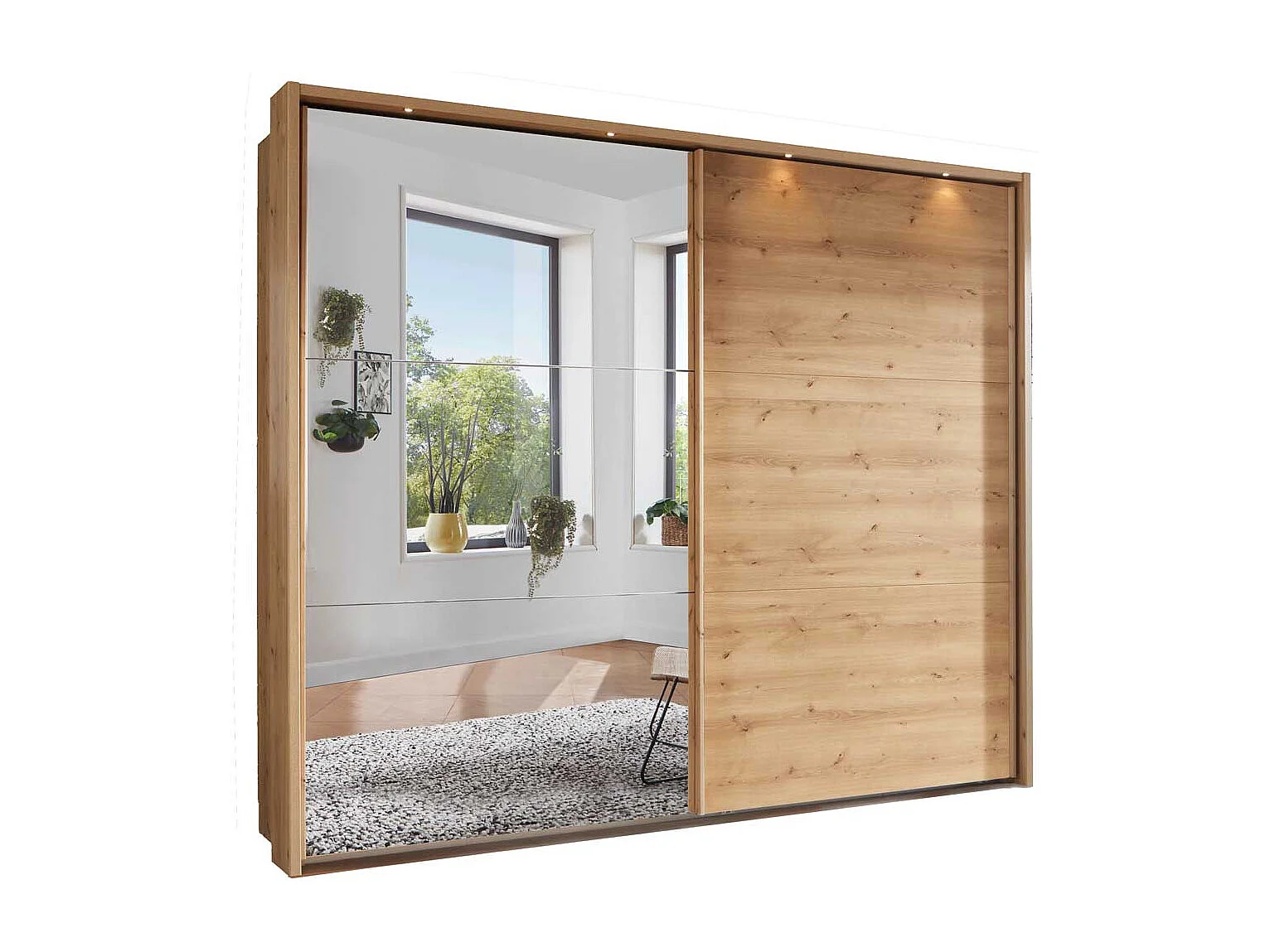Schwebetürenkleiderschrank in Eiche Bianco Made in Germany