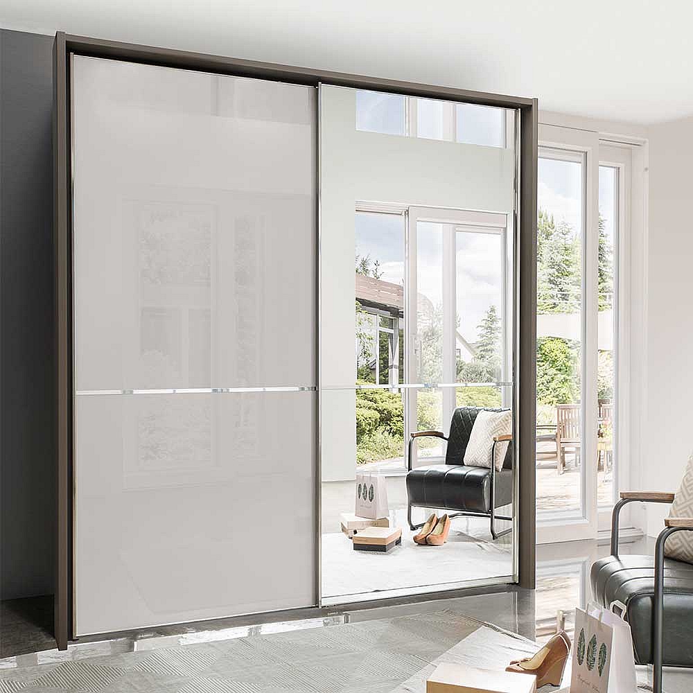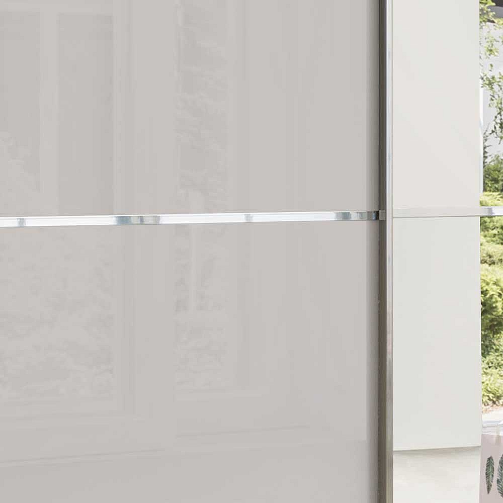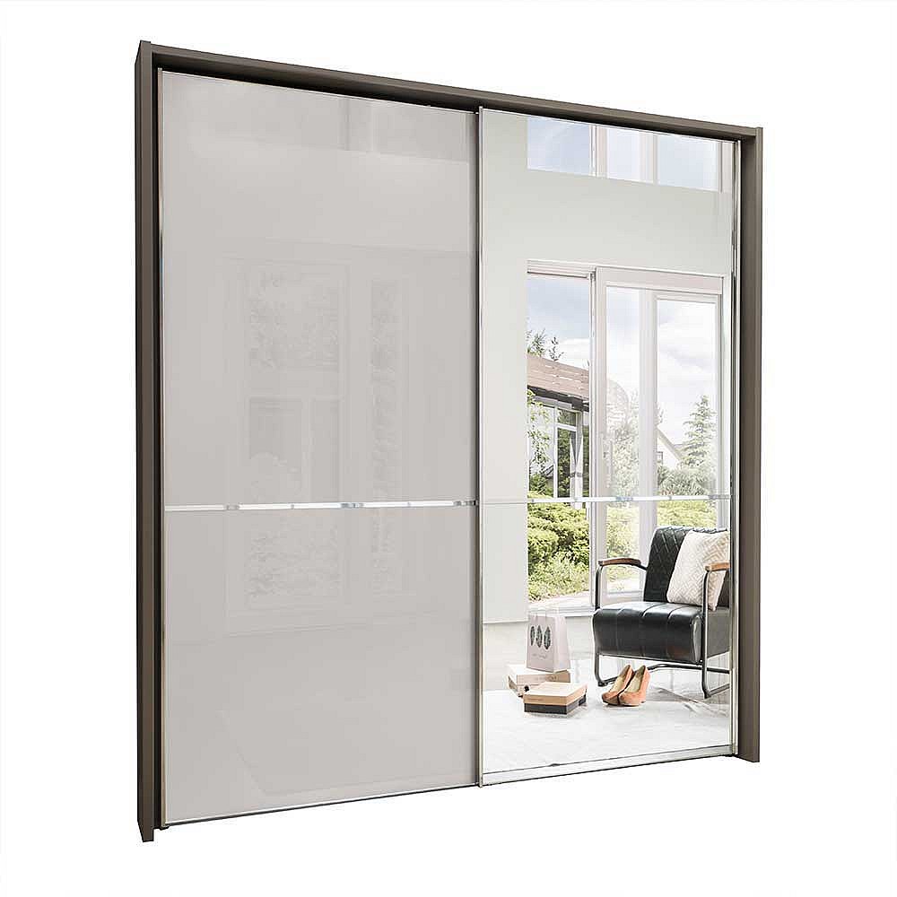 Schwebetürenkleiderschrank in Hellgrau und Braun 240 cm hoch
