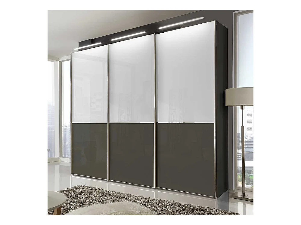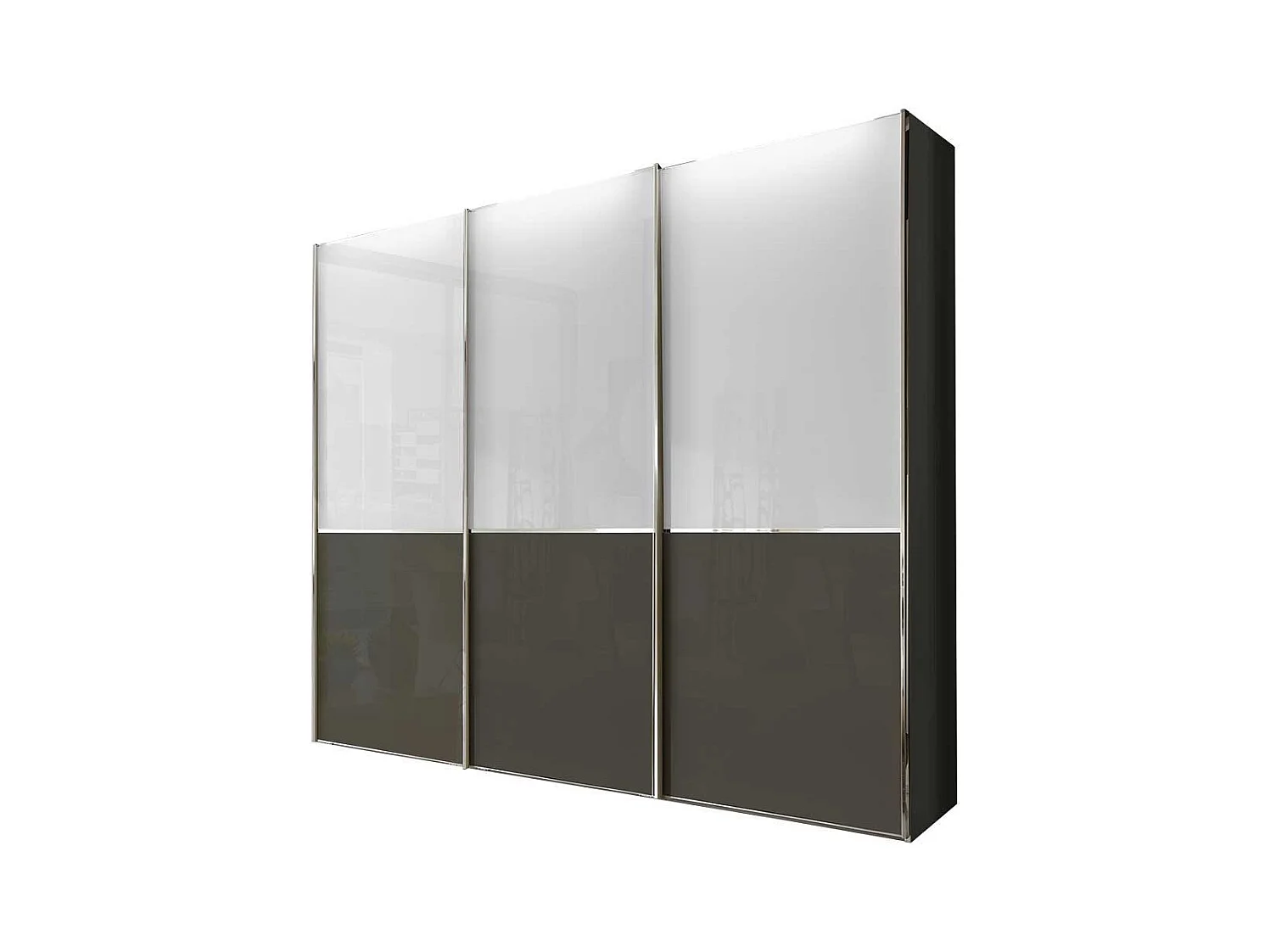 Schwebetürenkleiderschrank in Weiß und Braun 250 cm breit