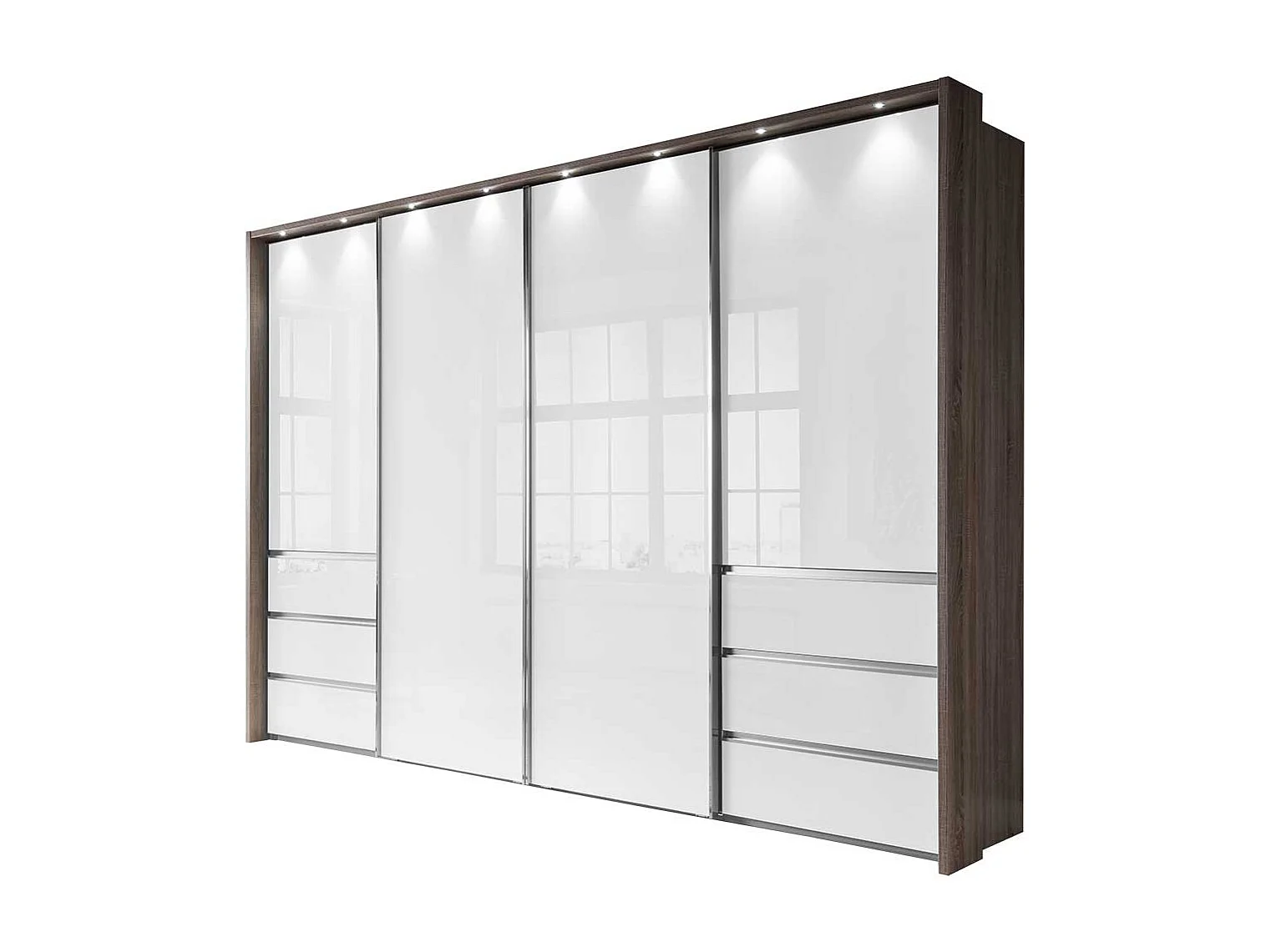 Schwebetürenkleiderschrank in Weiß und Trüffelfarben Made in Germany