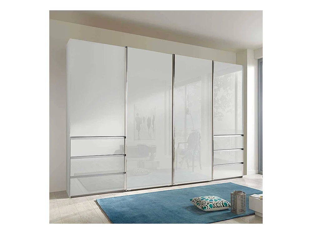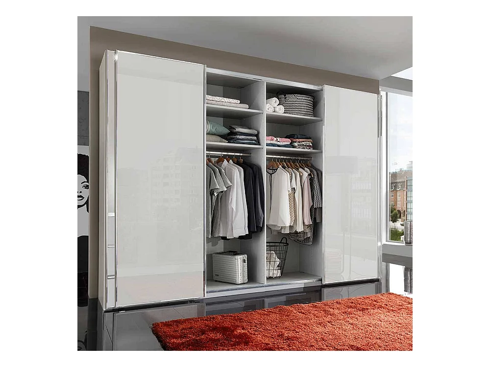 Schwebetürenkleiderschrank weiß Front glasbeschichtet Made in Germany