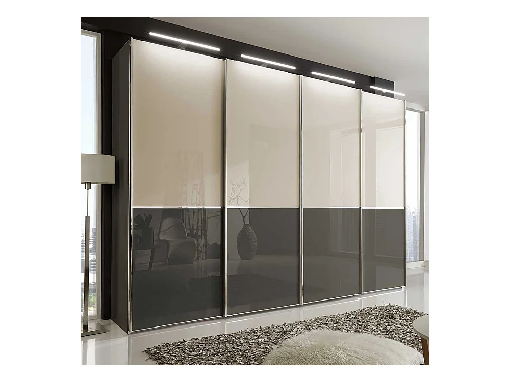 Schwebetürenschrank in Creme Weiß und Braun 300 cm breit