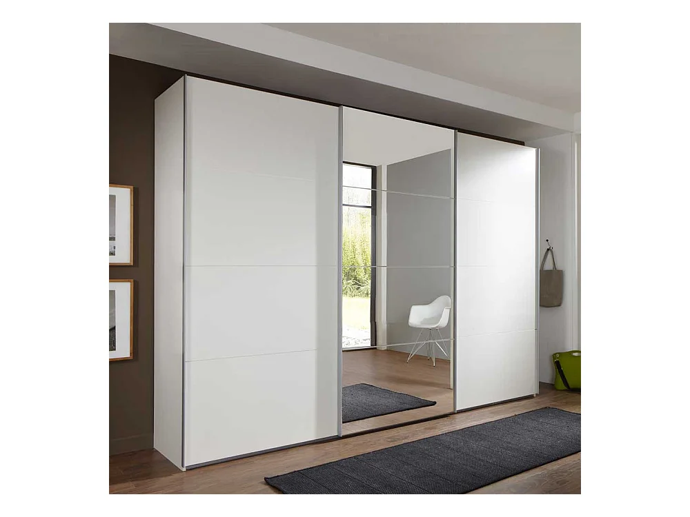 Schwebetürenschrank in Weiß mit Spiegeltür 270 cm breit
