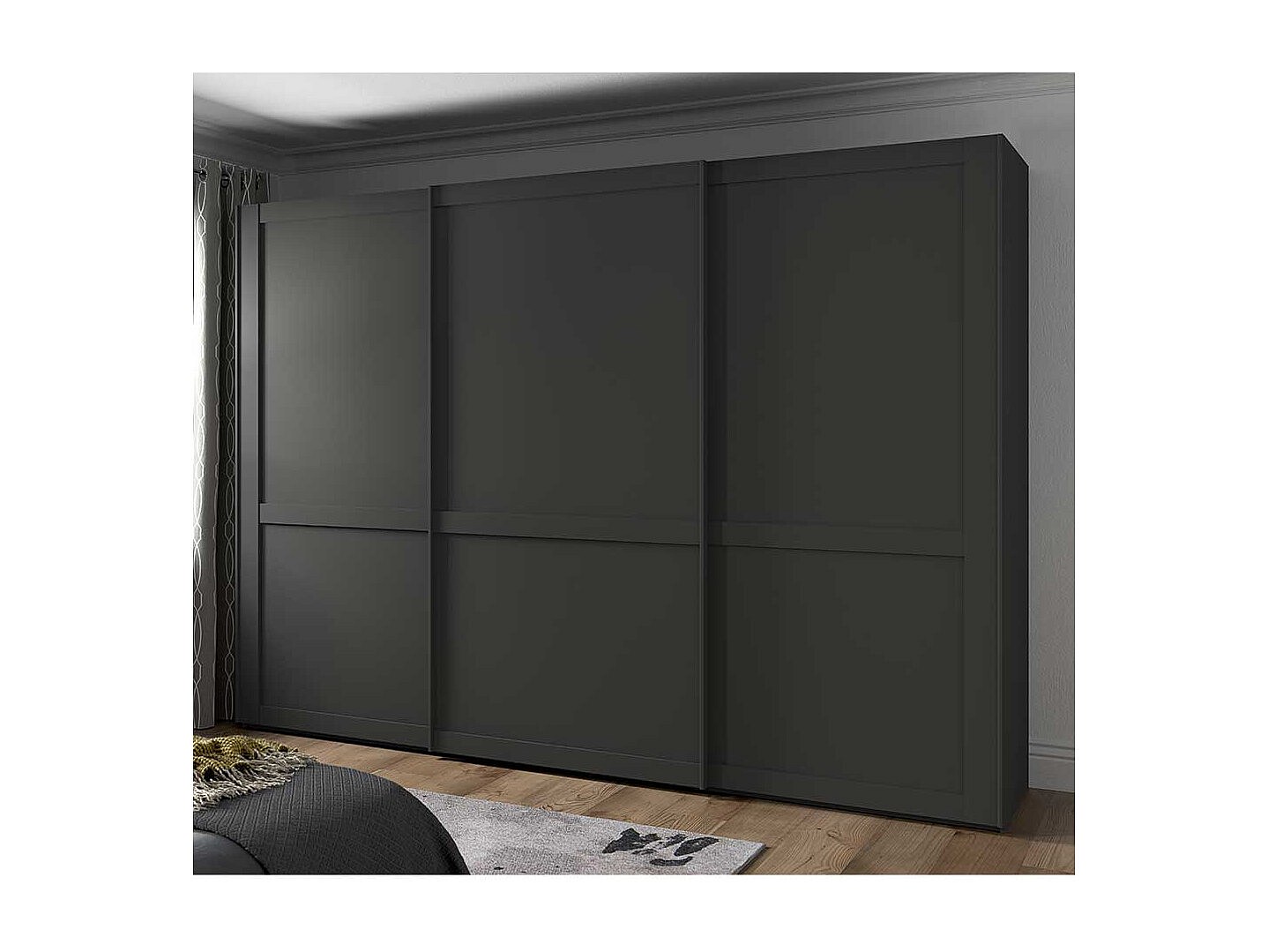 Schwebetürenschrank ohne Spiegel in Dunkelgrau modernen Landhausstil
