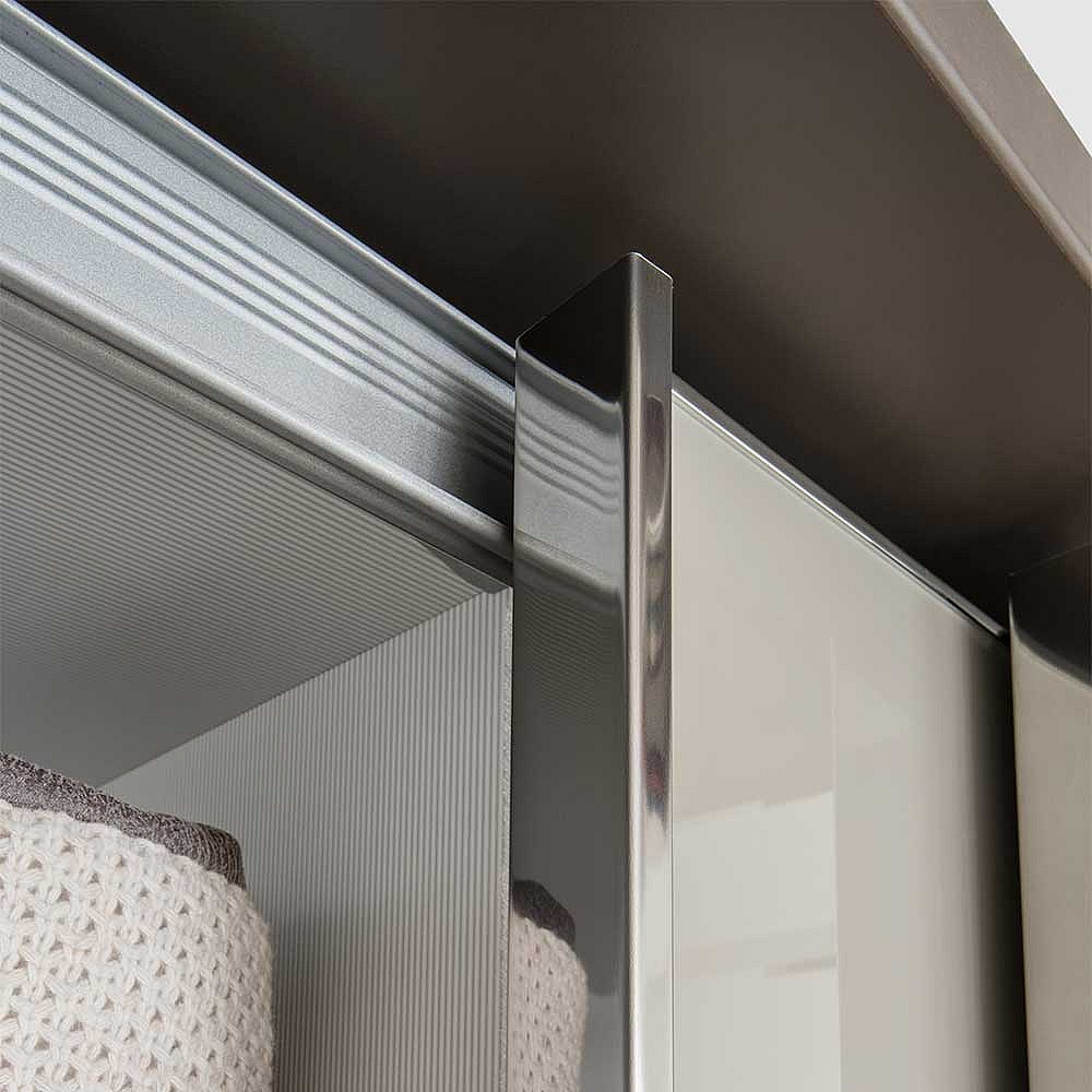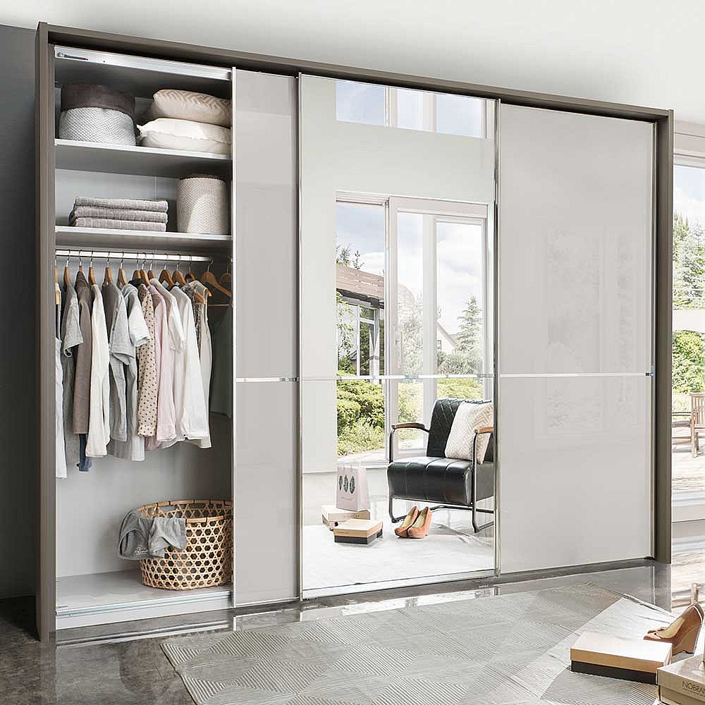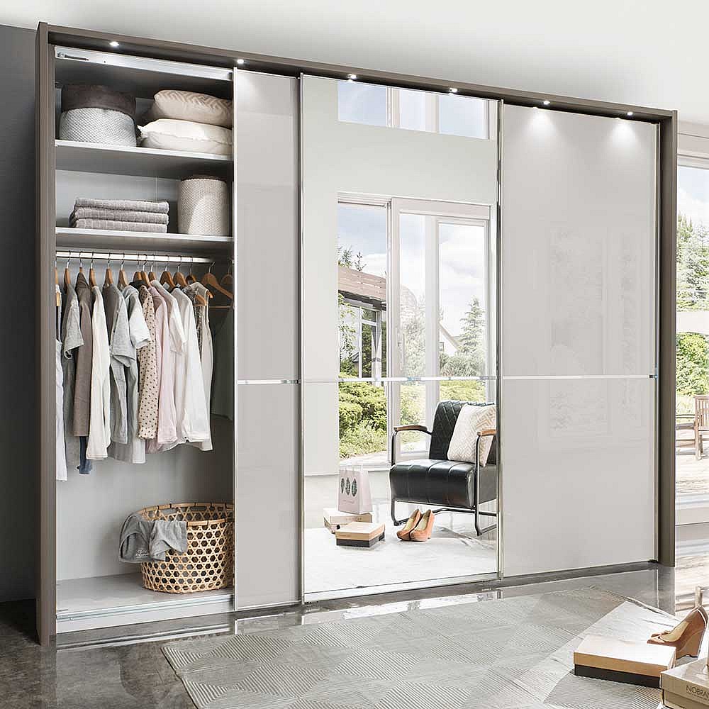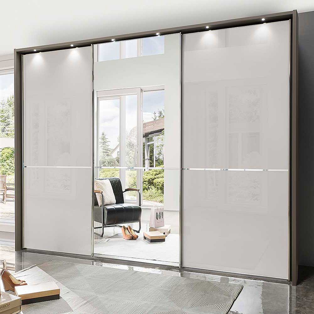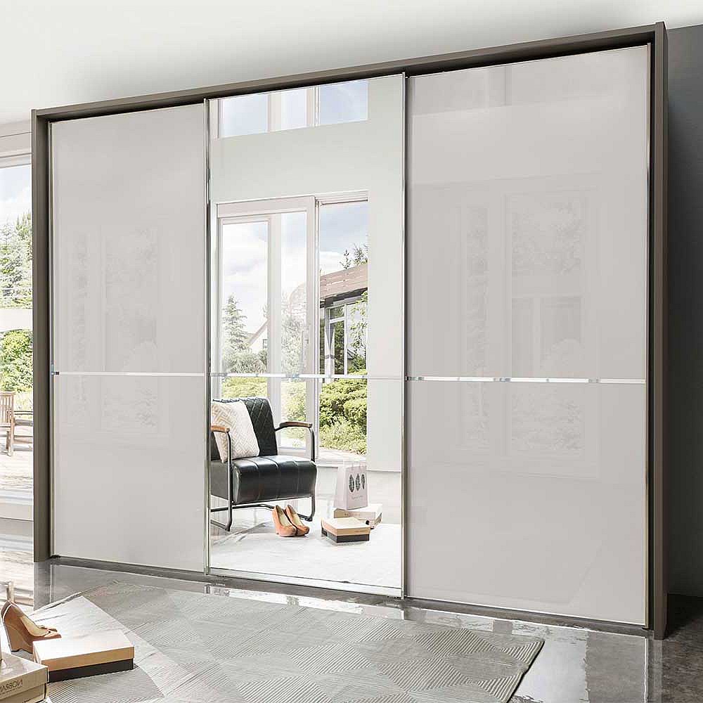 Schwebetuerenschrank mit Spiegel Hellgrau und Braun
