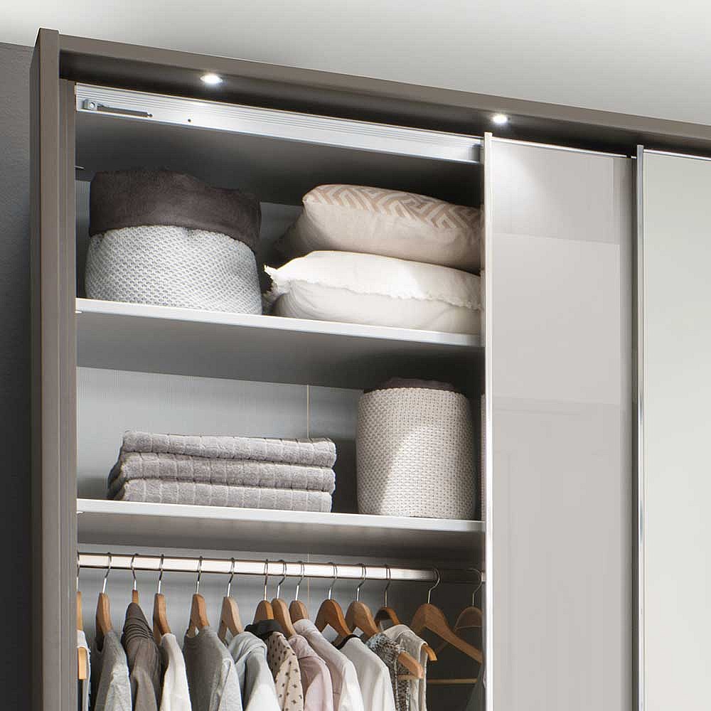 Schwebetuerenschrank mit Spiegel Hellgrau und Braun
