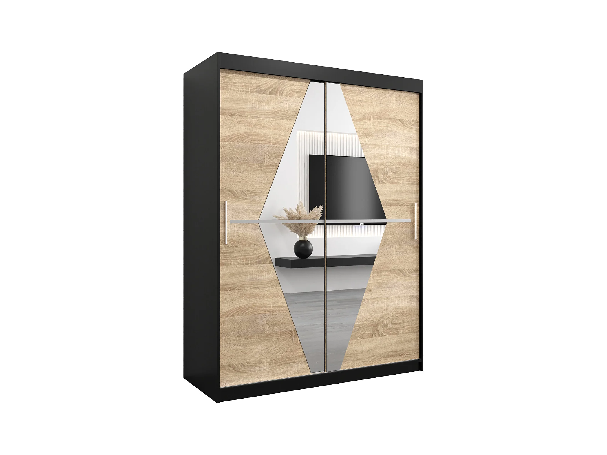 Schwebetürenschrank Boliwia 200/150/62 2-Türig (Schwarz/Sonoma)