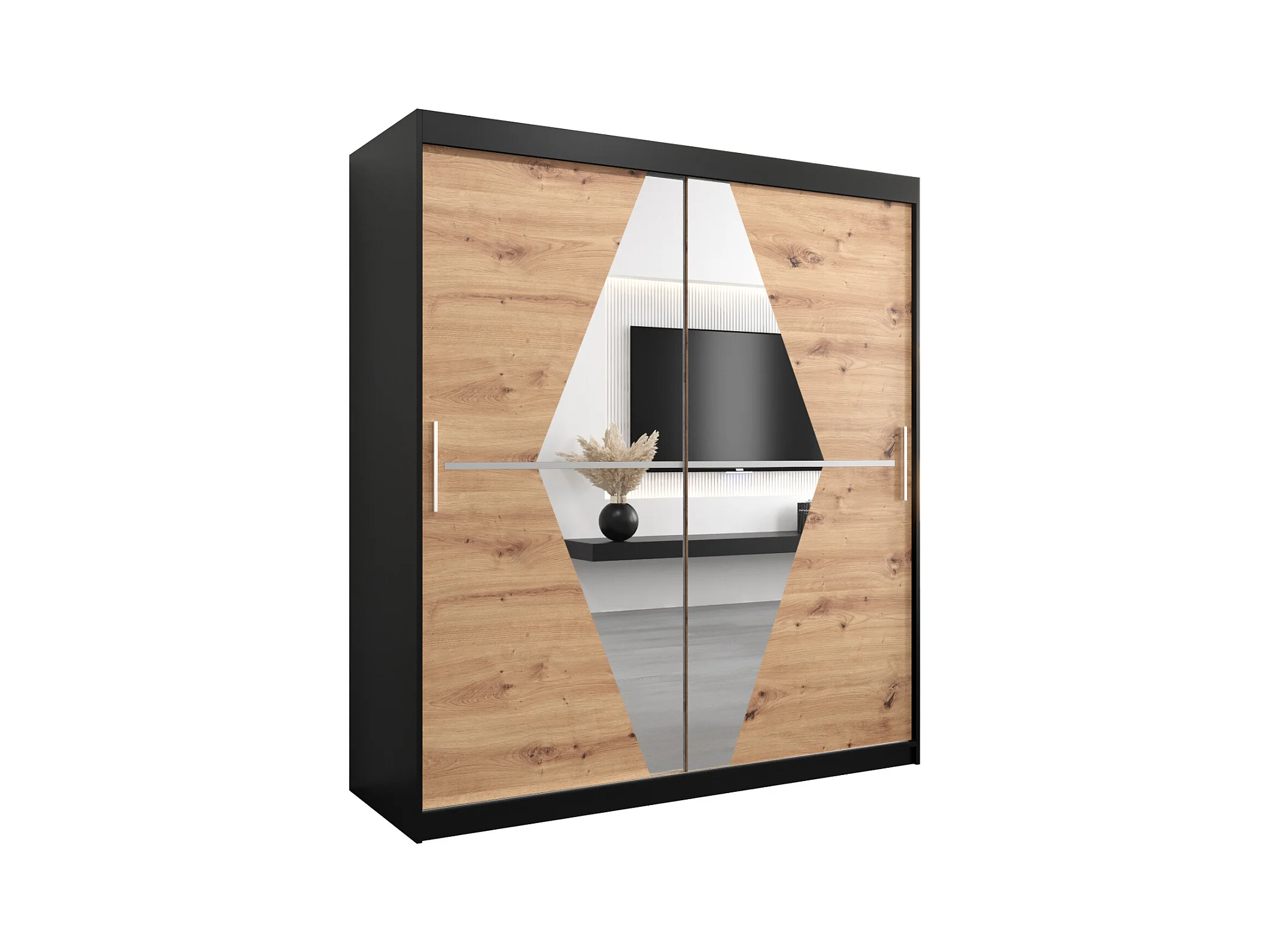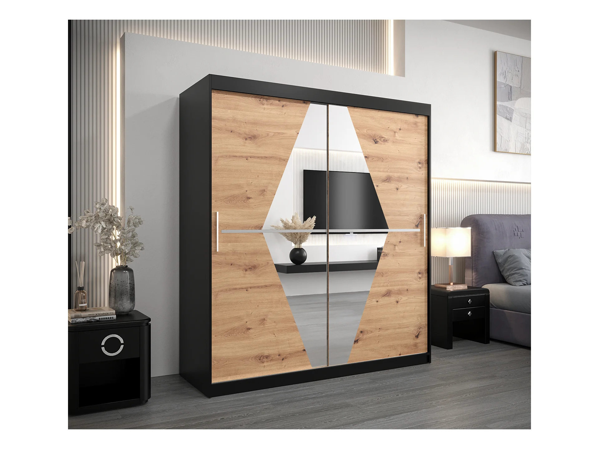 Schwebetürenschrank Boliwia 200/180/62 2-Türig (Schwarz/Artisan)