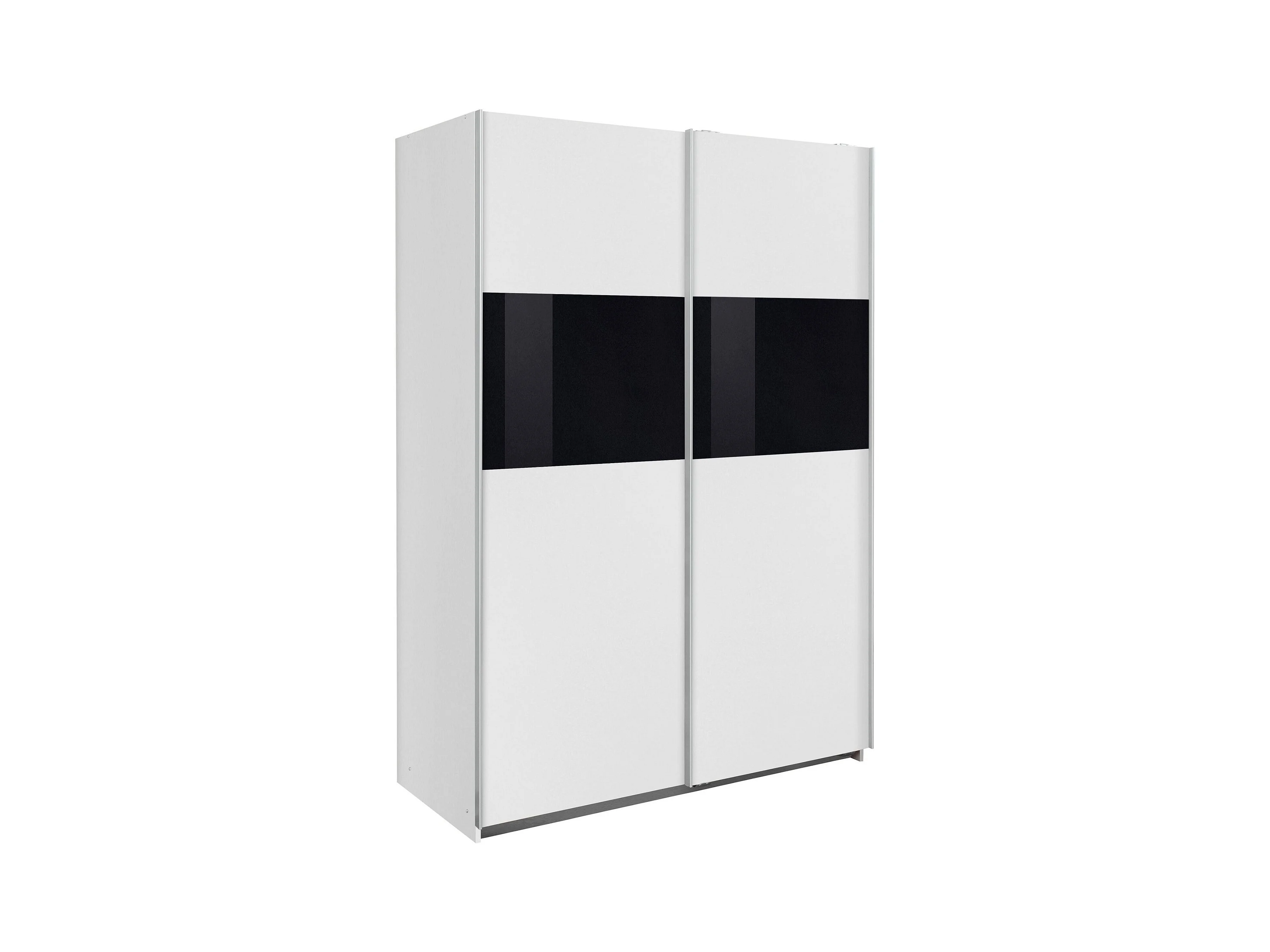 SCHWEBETÜRENSCHRANK Bramfeld Weiß / Schwarzglas 135 / 64 / 198cm