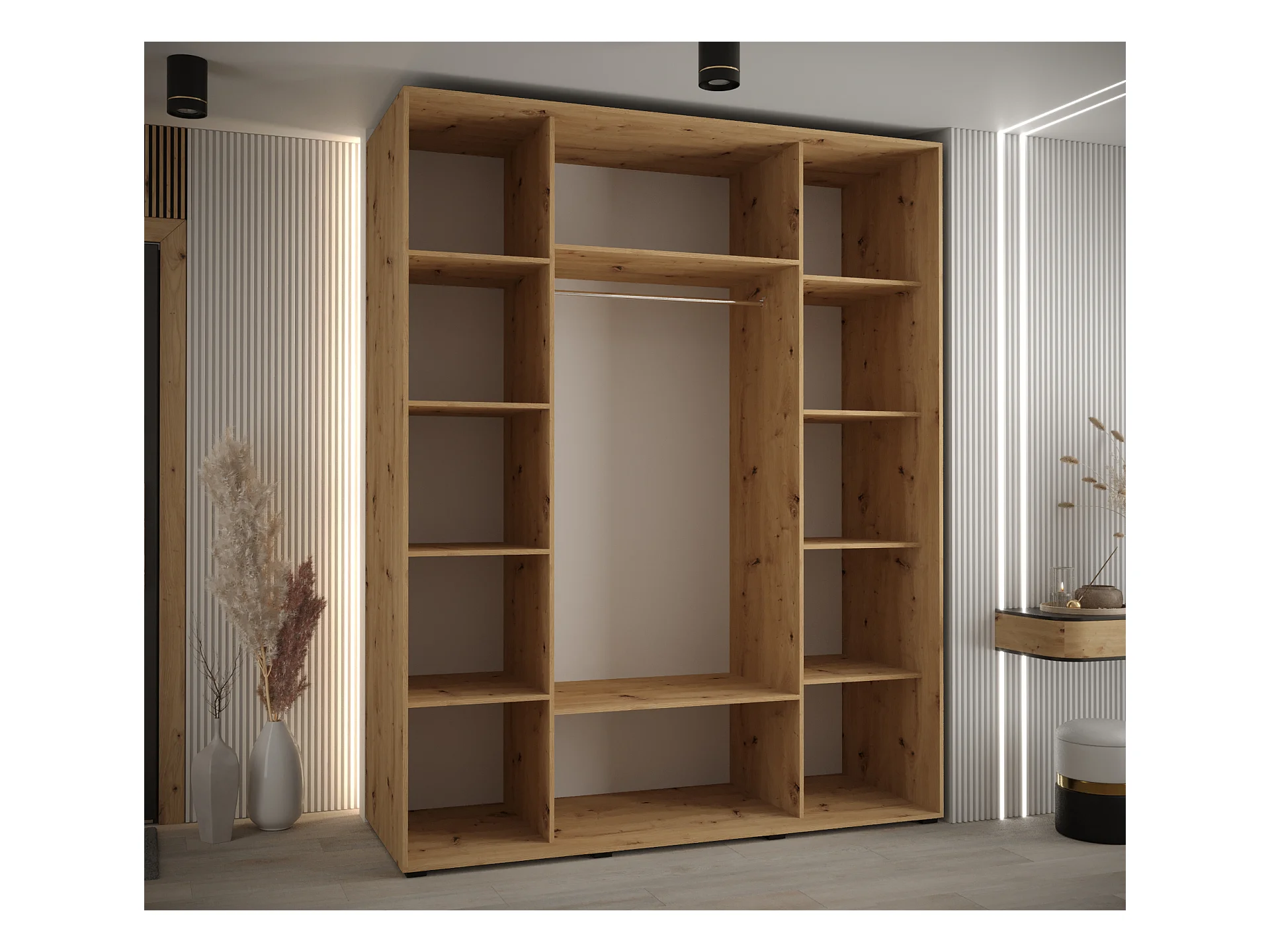 SCHWEBETÜRENSCHRANK DAVOS 4 235,2/200/60 3-türig (Artisan/Artisan/Silber)