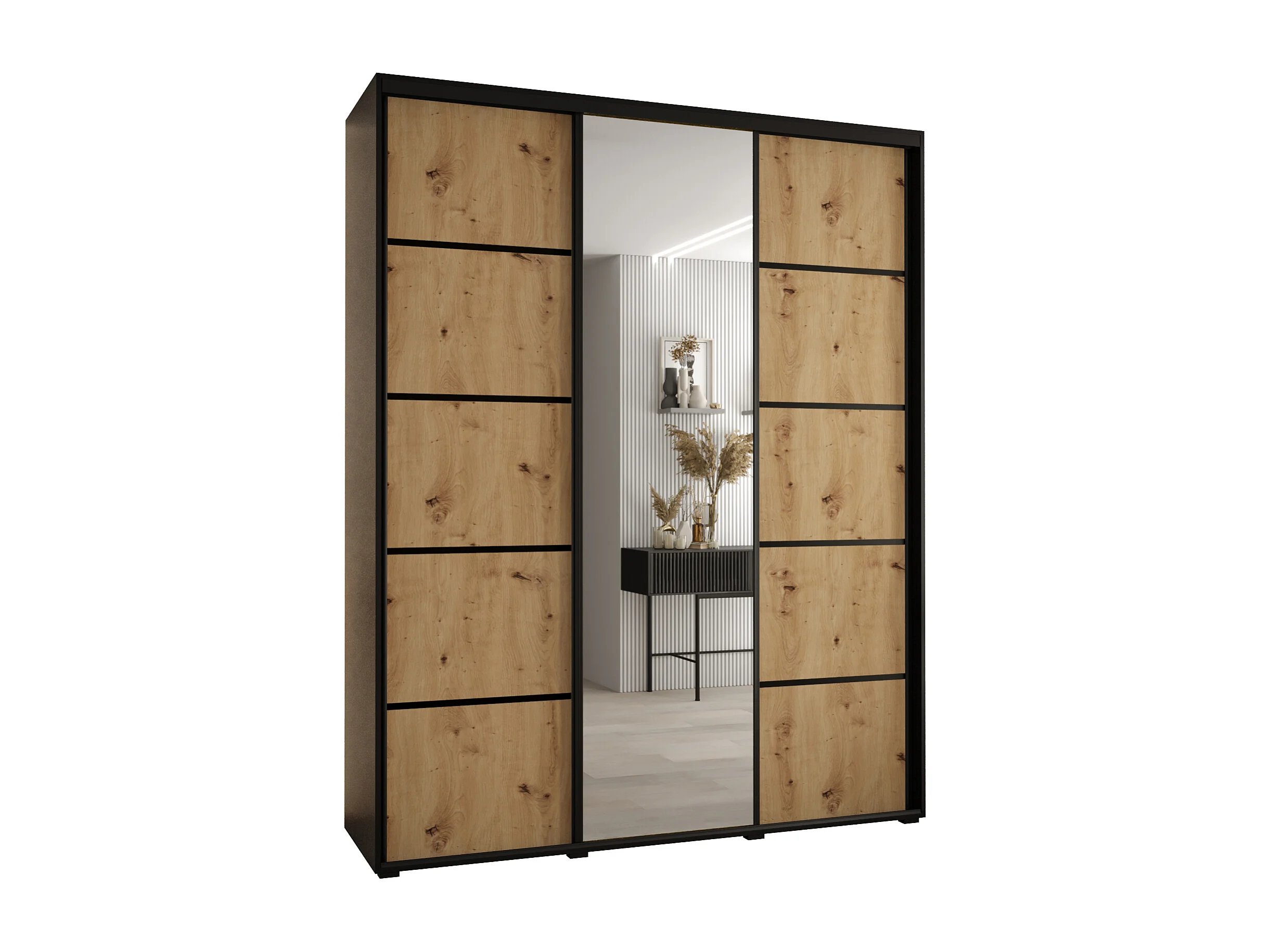 SCHWEBETÜRENSCHRANK DAVOS 5 235,2/170/60 3-türig (Schwarz/Artisan/Schwarz)