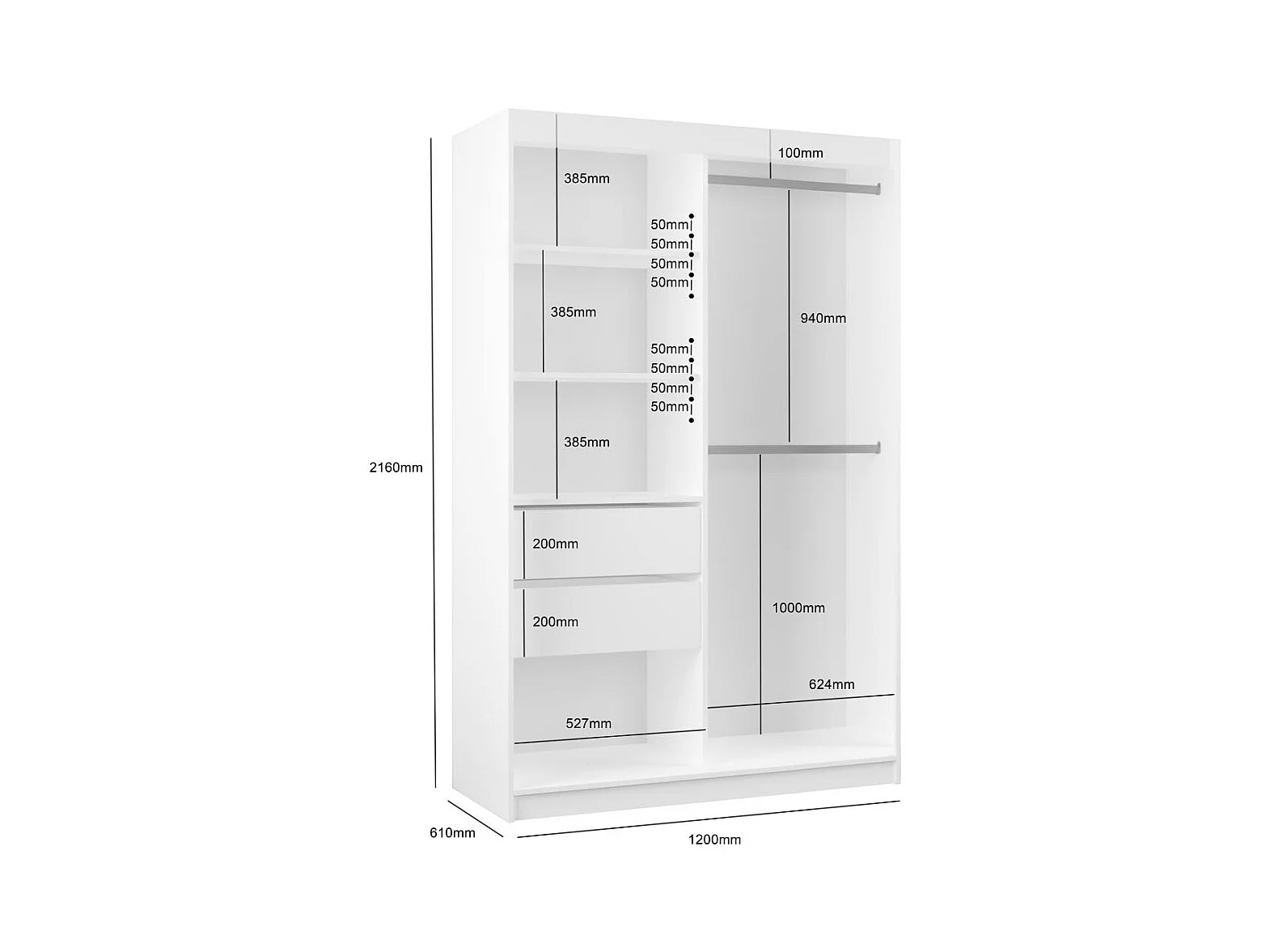 SCHWEBETÜRENSCHRANK Debra II 120/216/61 kaschmir mit Spiegel und Schubladen
