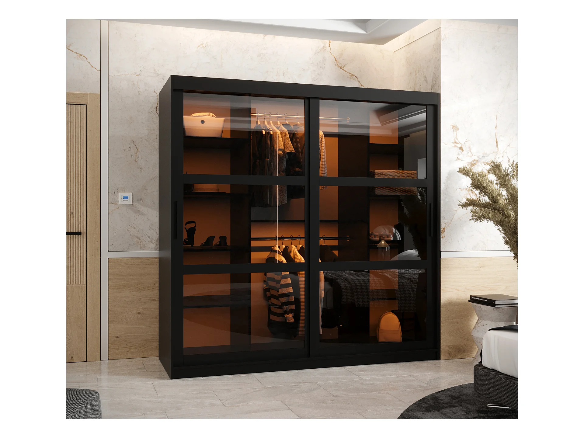 SCHWEBETÜRENSCHRANK DOME 200/180/62 2-türig (Schwarz)