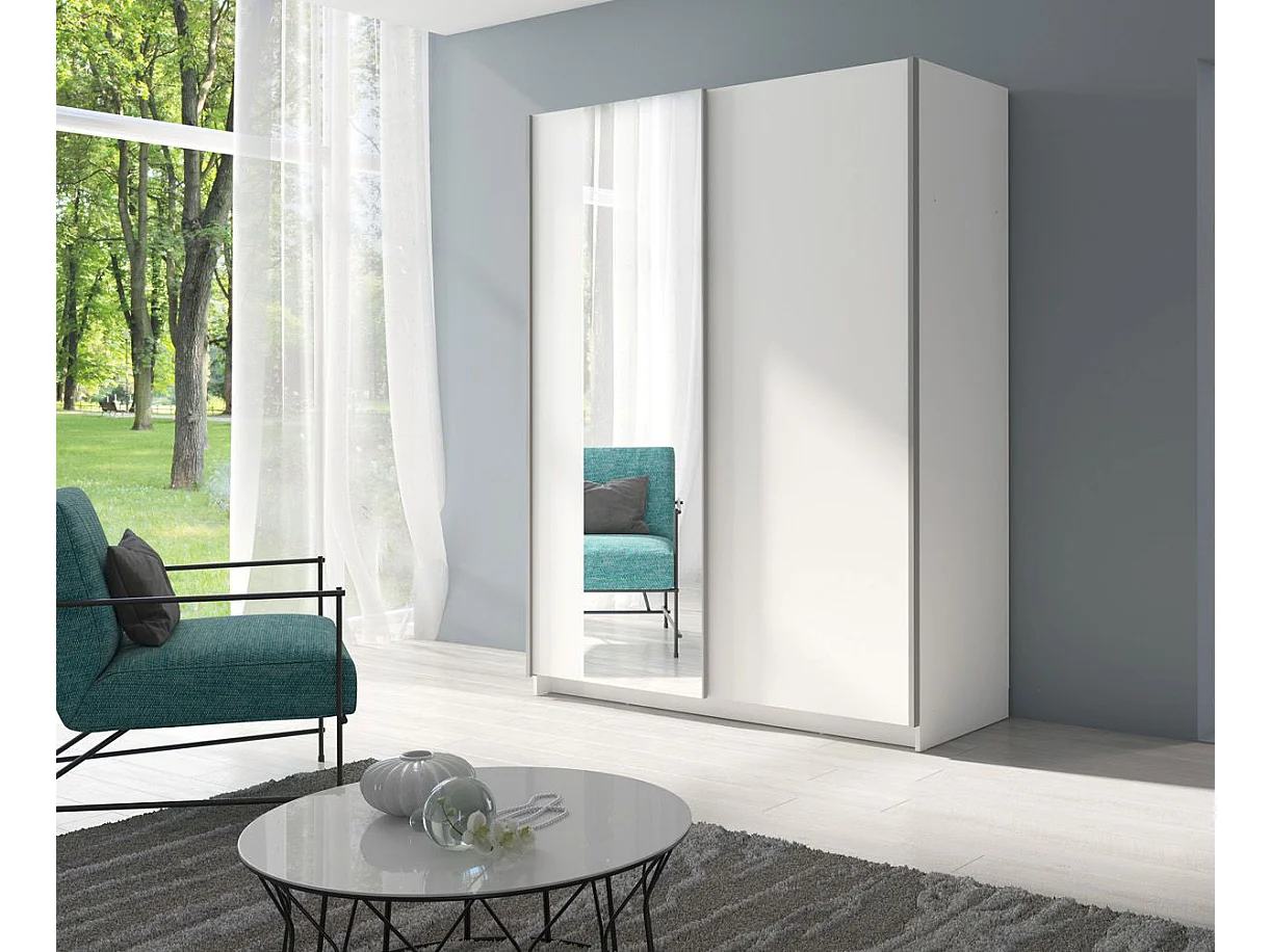 SCHWEBETÜRENSCHRANK Gozo Weiß / Spiegel 150 / 62 / 198cm