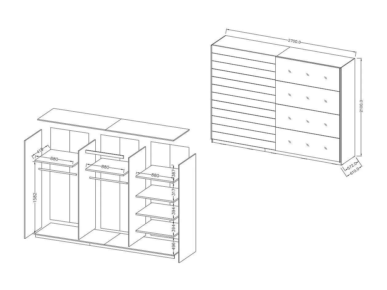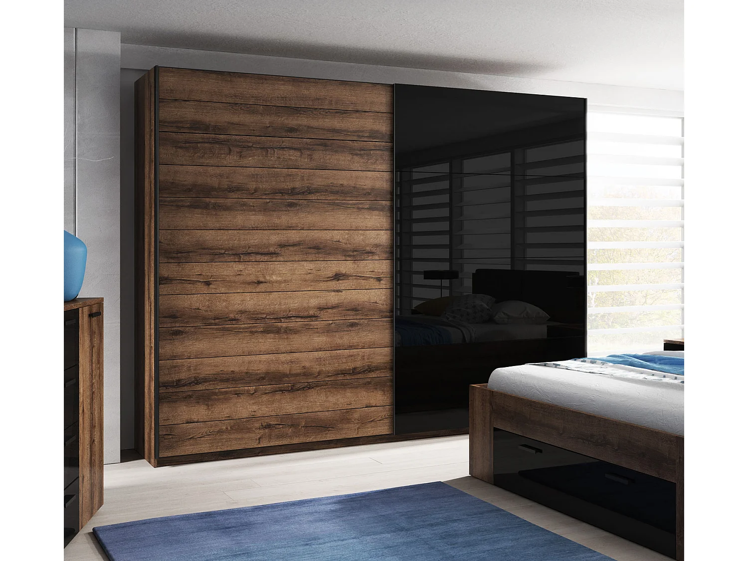 SCHWEBETÜRENSCHRANK Granada Monastery Eiche / Schwarz Hochglanz 270 / 61 / 210 cm
