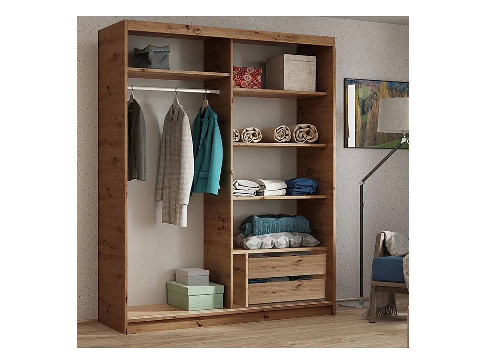 SCHWEBETÜRENSCHRANK Hela 100/205/60 2-türig eiche Artisan mit Schubladen