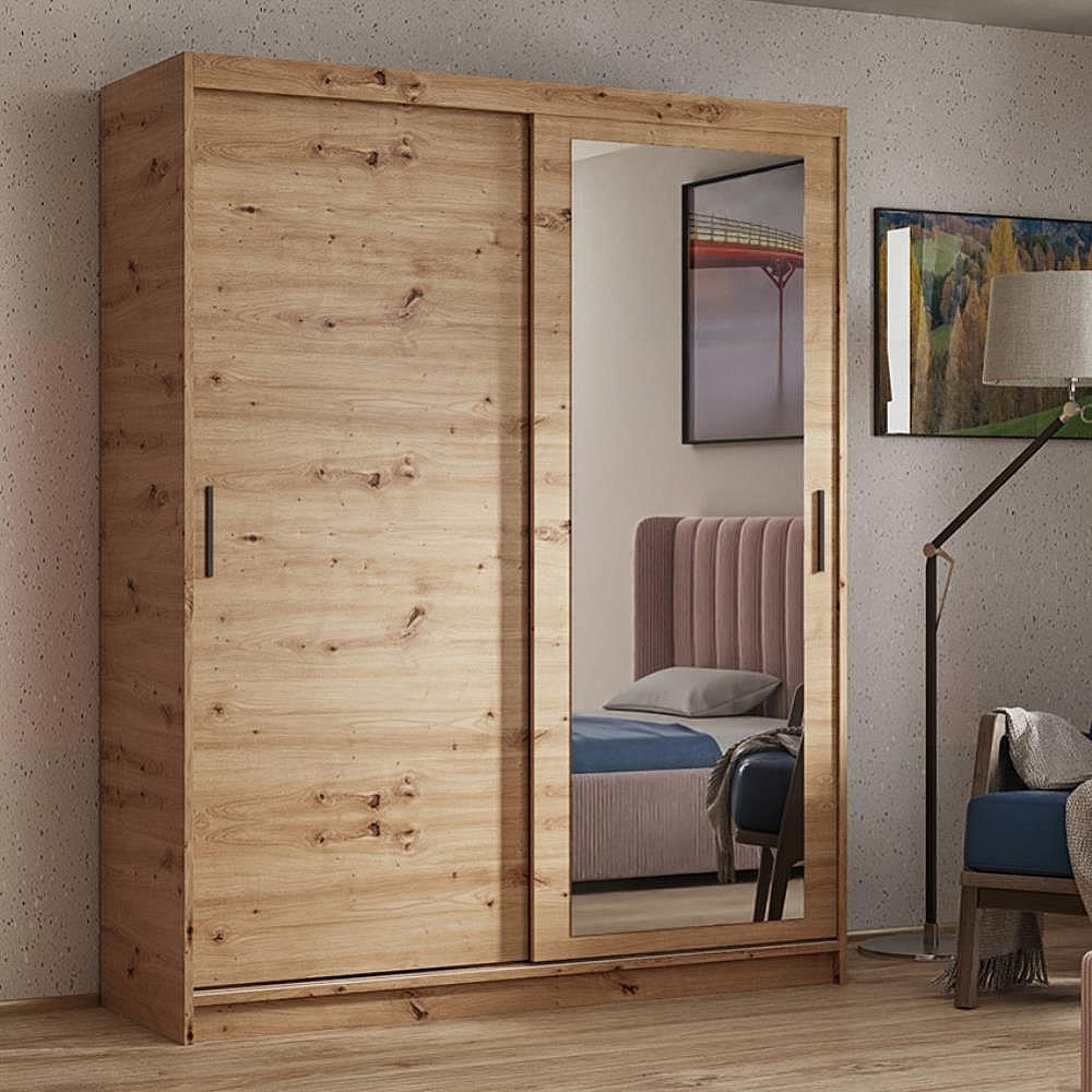 SCHWEBETÜRENSCHRANK Hela 160/205/60 2-türig eiche Artisan mit Spiegel