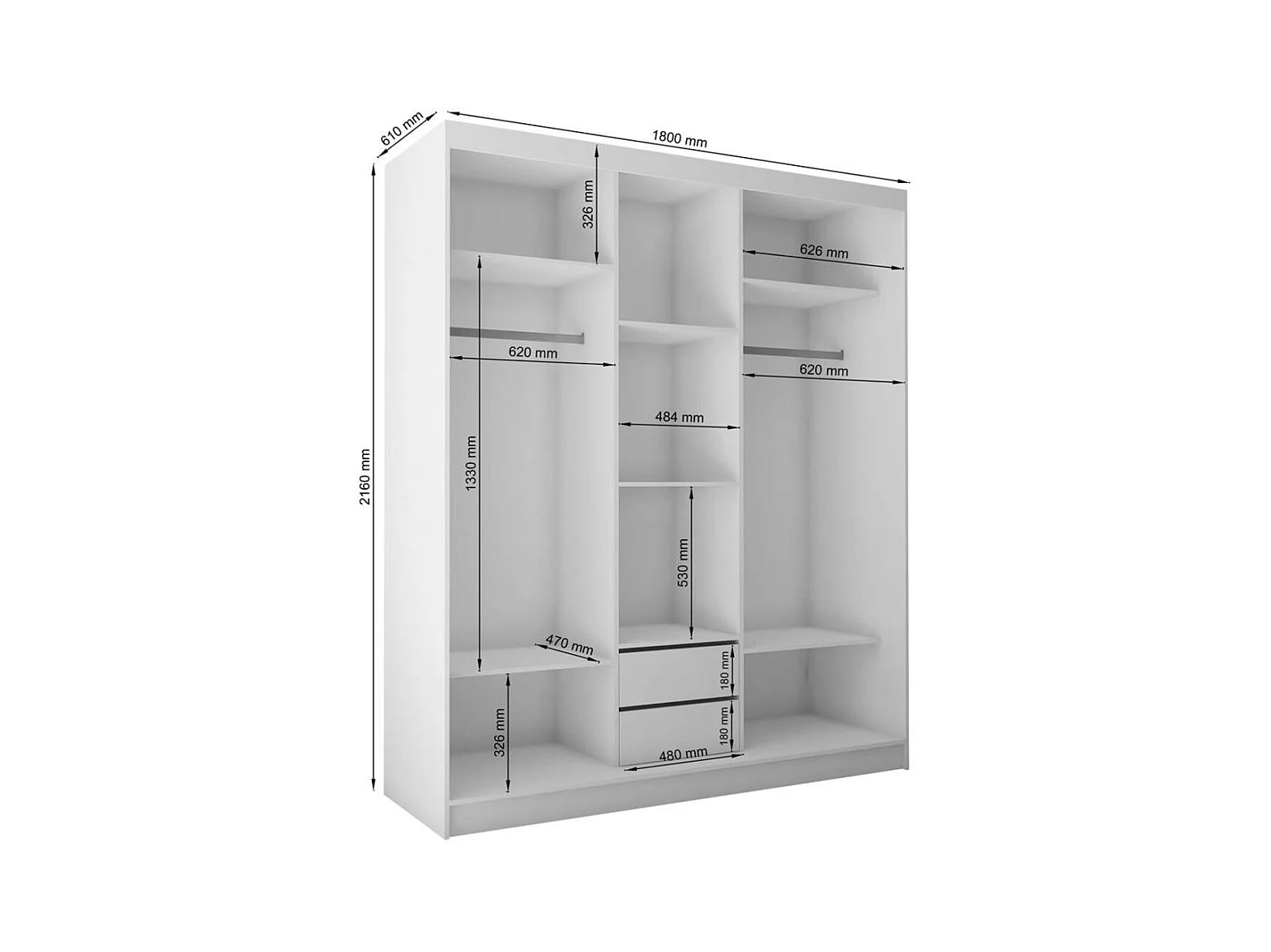 SCHWEBETÜRENSCHRANK Helix 180/216/61 weiß+eiche artisan mit Schubladeneinsatz