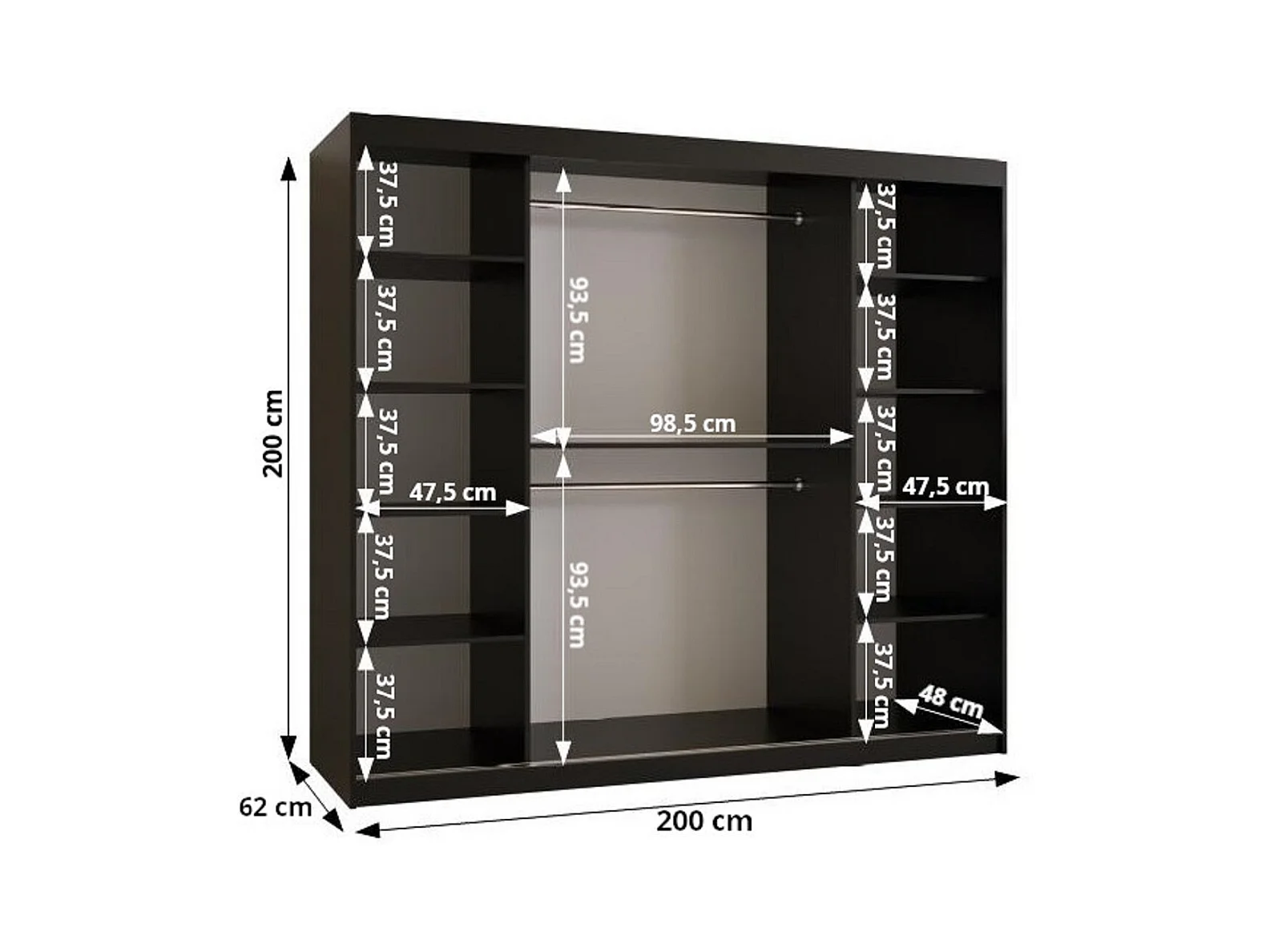 Schwebetürenschrank Jodełka 1 200/200/62 2-Türig (Schwarz/Artisan)