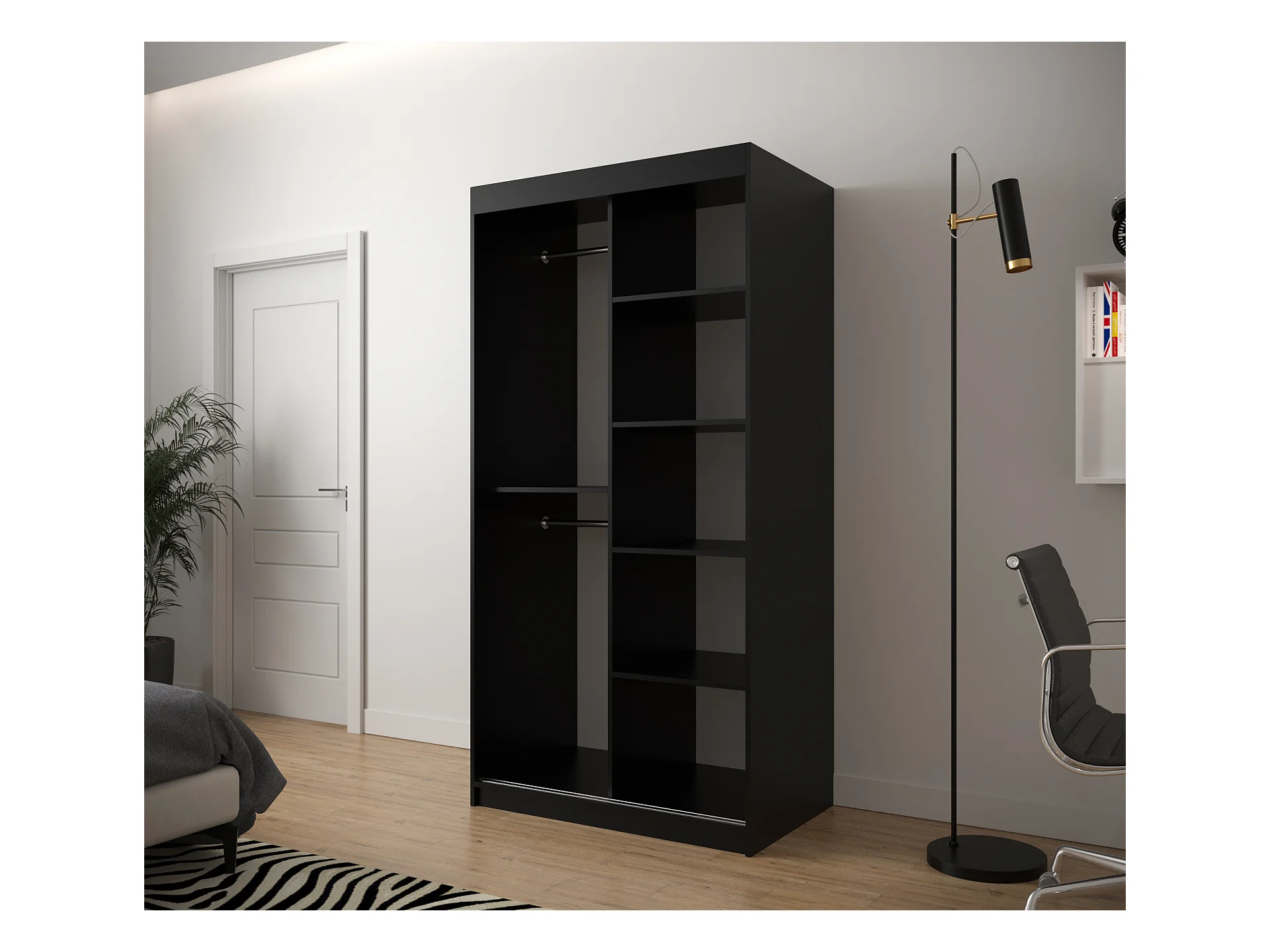 Schwebetürenschrank Jodełka 200/100/62 2-Türig (Schwarz/Artisan)