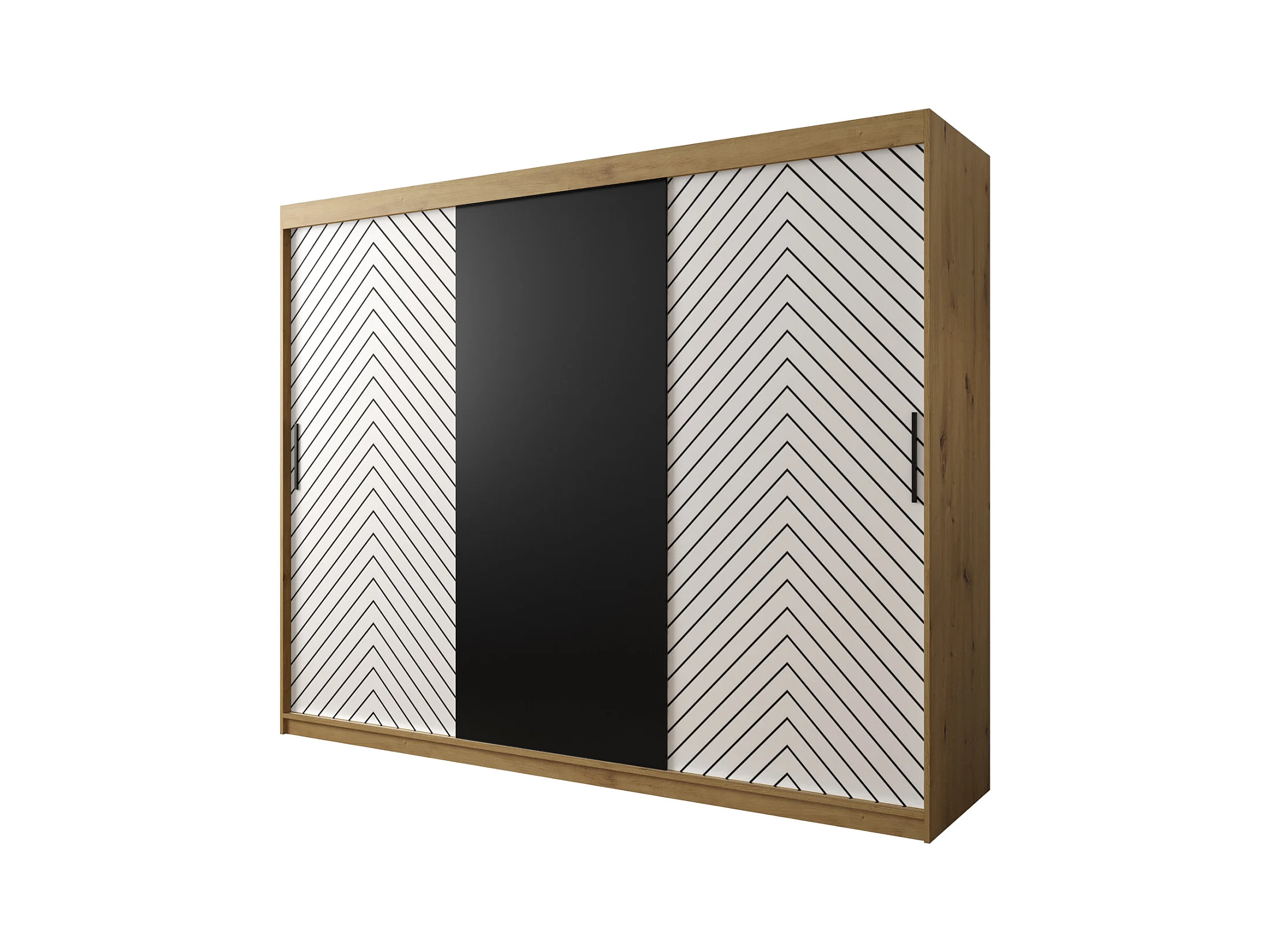 Schwebetürenschrank Jodełka 200/250/62 3-Türig (Artisan/Weiß)