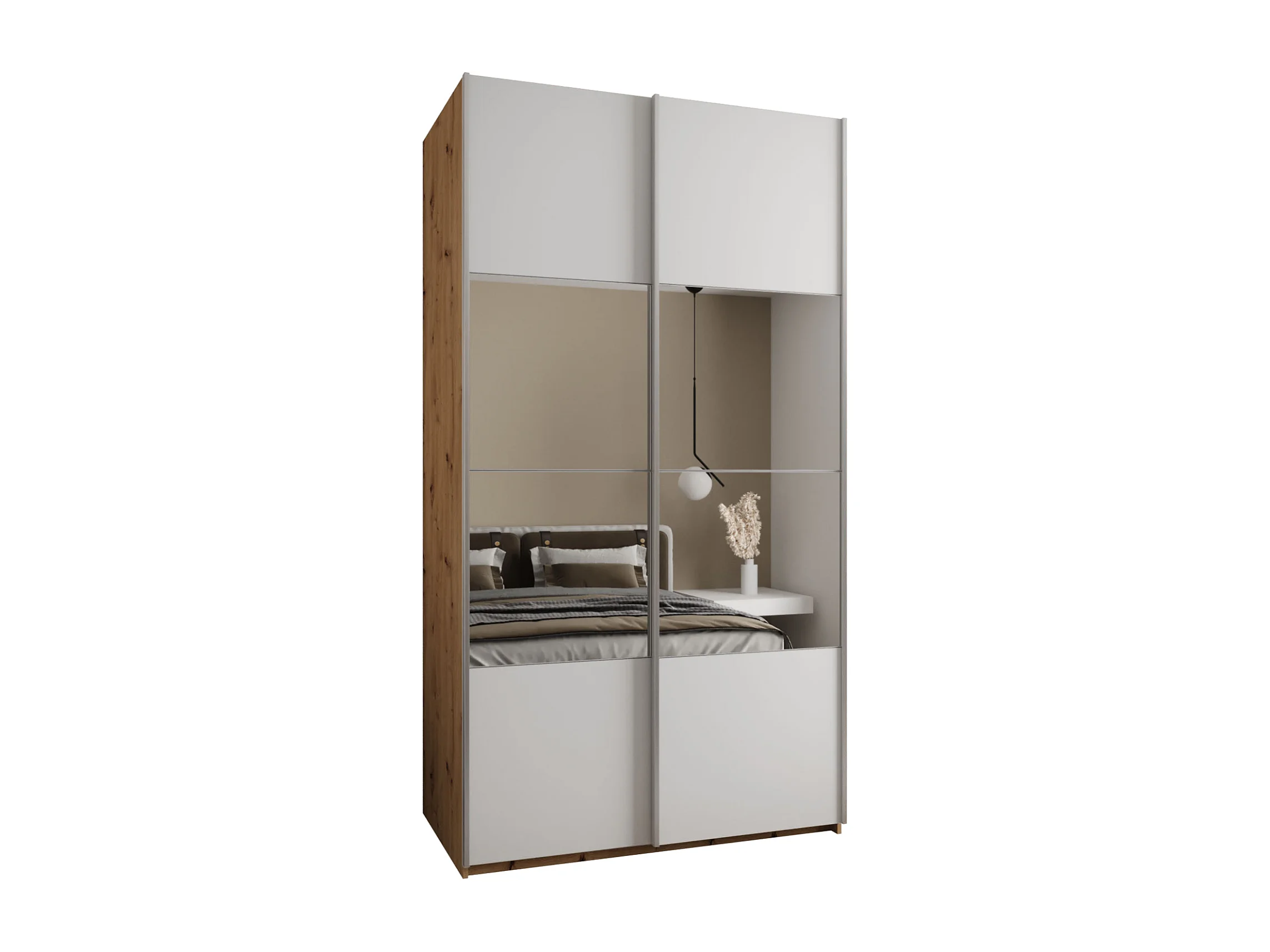 SCHWEBETÜRENSCHRANK Lux 4 245,5/140/64 (Artisan/Weiß/Silber)