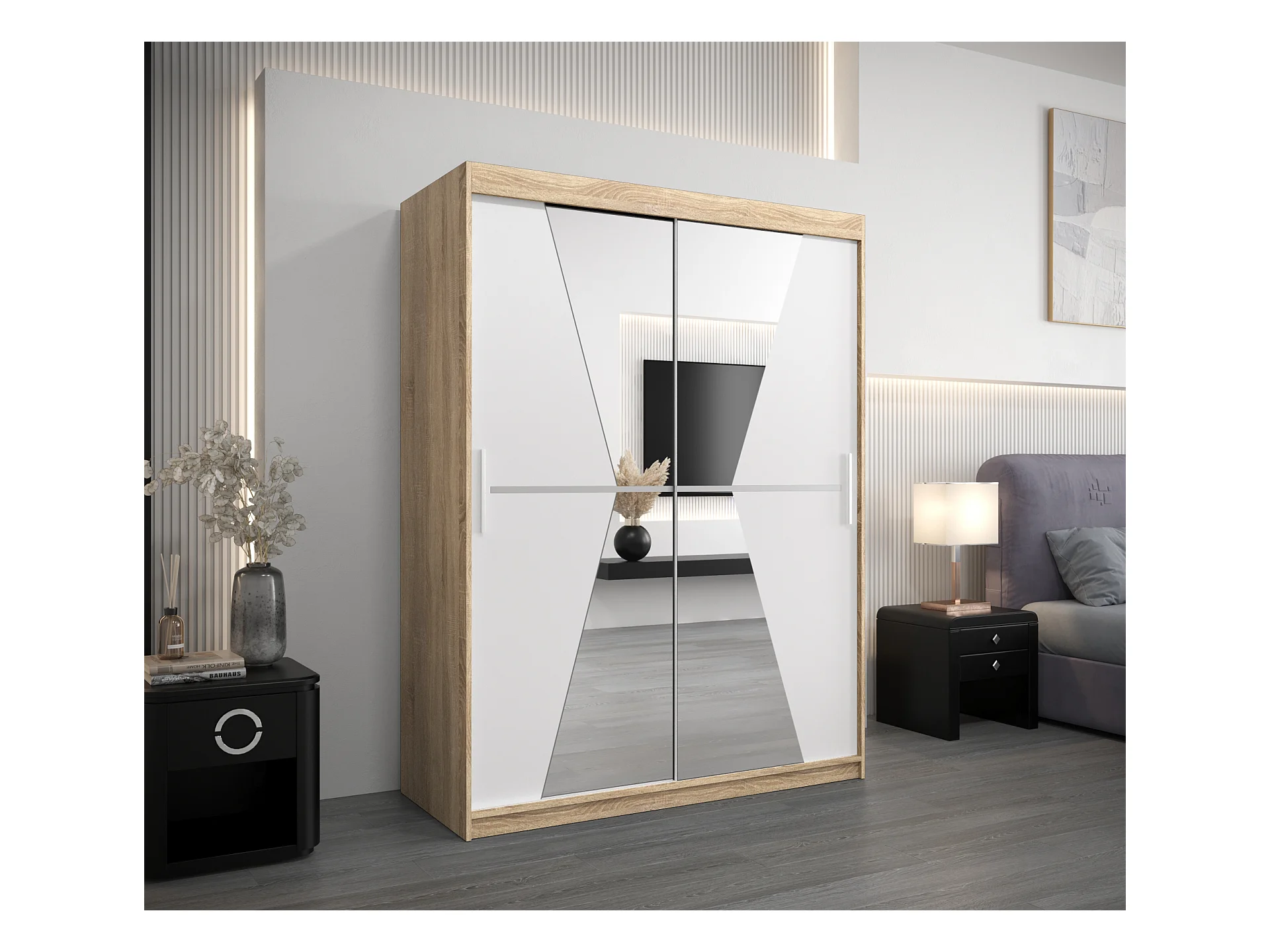 Schwebetürenschrank Maroko 200/150/62 2-Türig (Sonoma/Weiß)