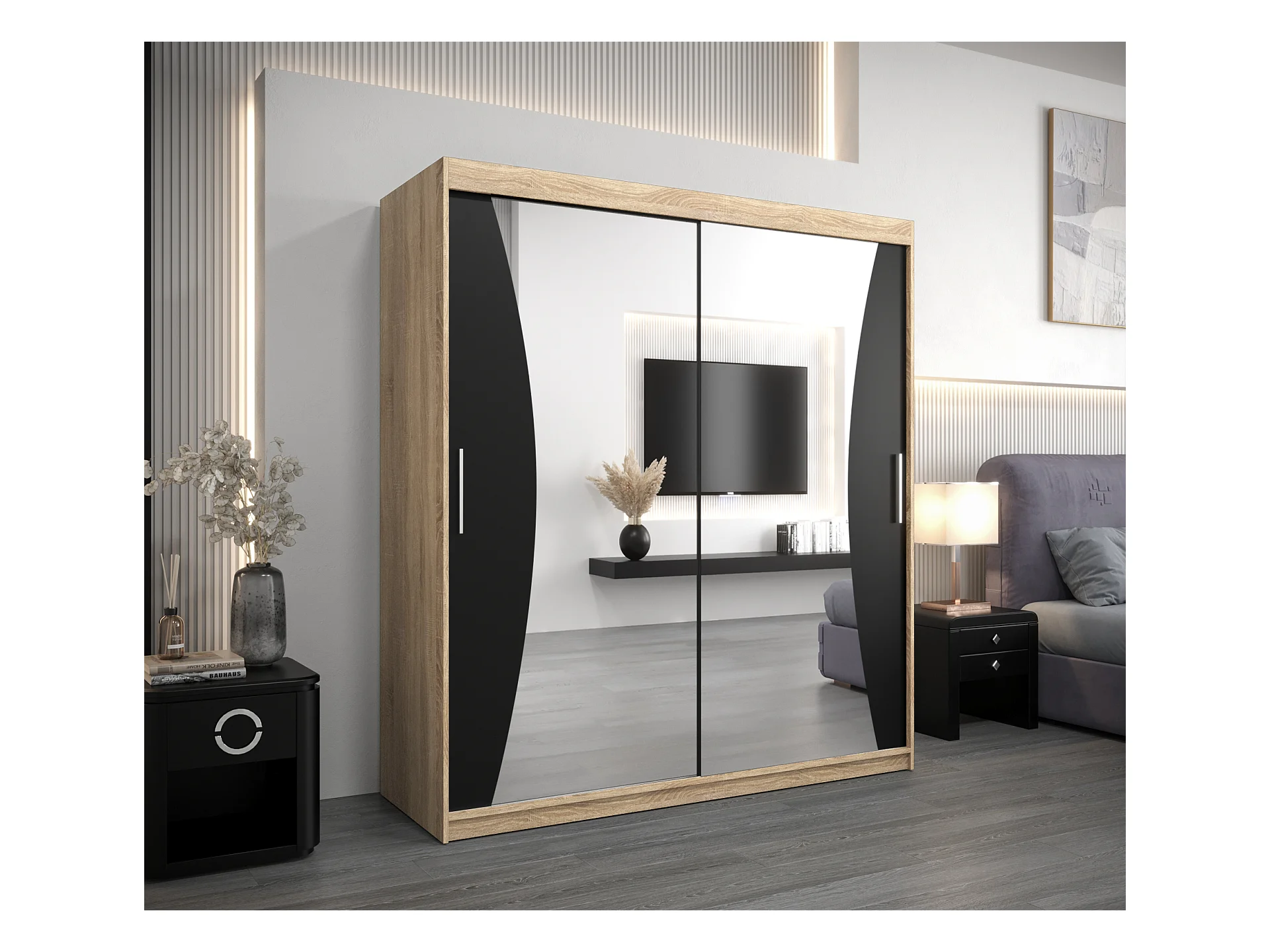 SCHWEBETÜRENSCHRANK MONACO 200/180/62 2-türig (Sonoma/Schwarz)