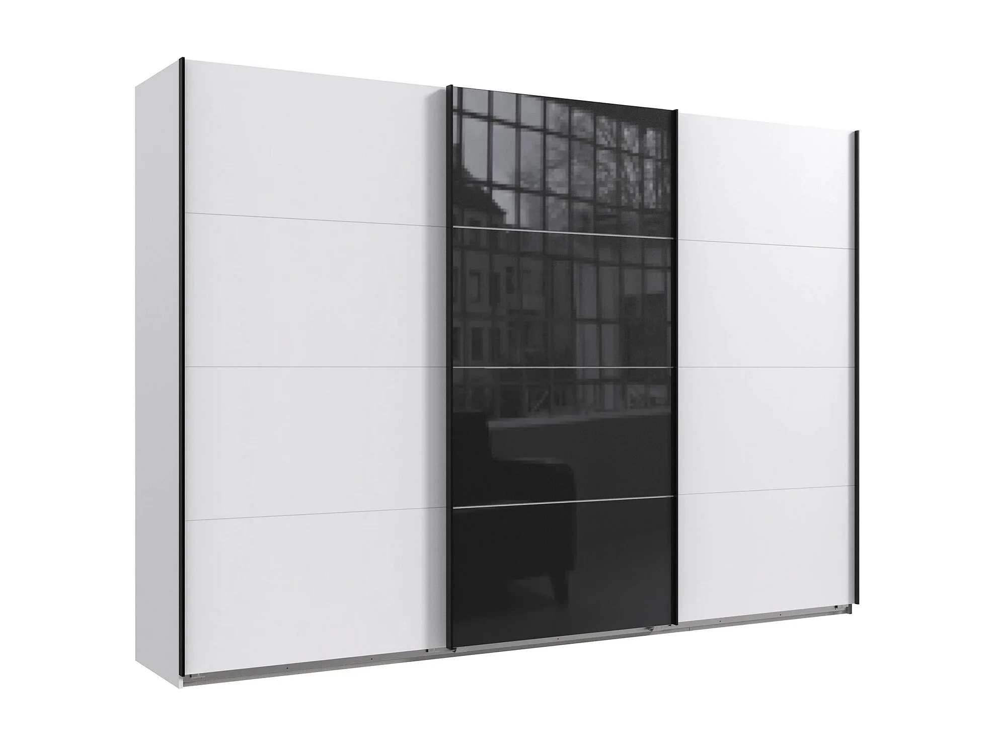 SCHWEBETÜRENSCHRANK Norderstedt Weiß / Glasschwarz 360 / 64 / 236cm