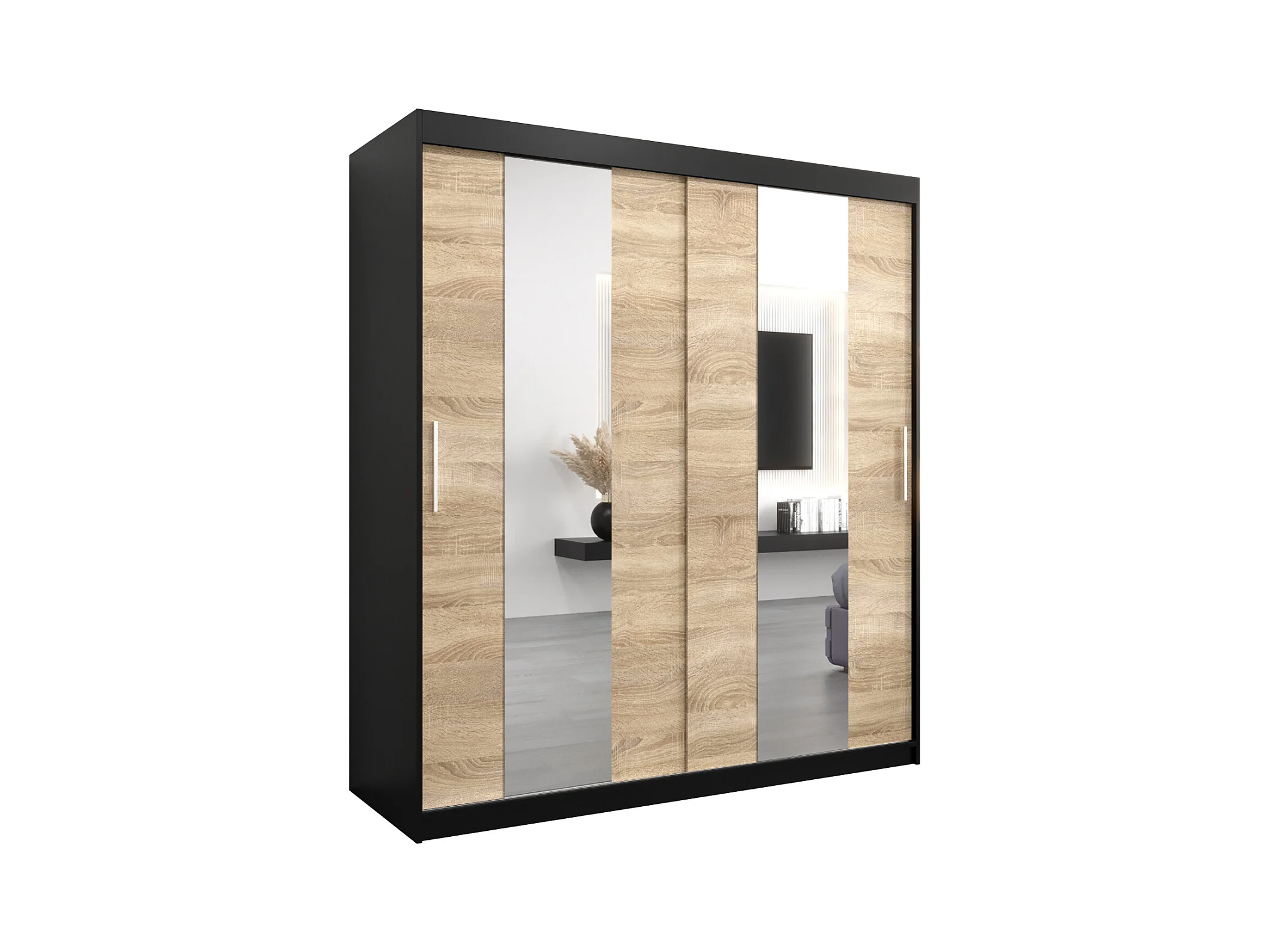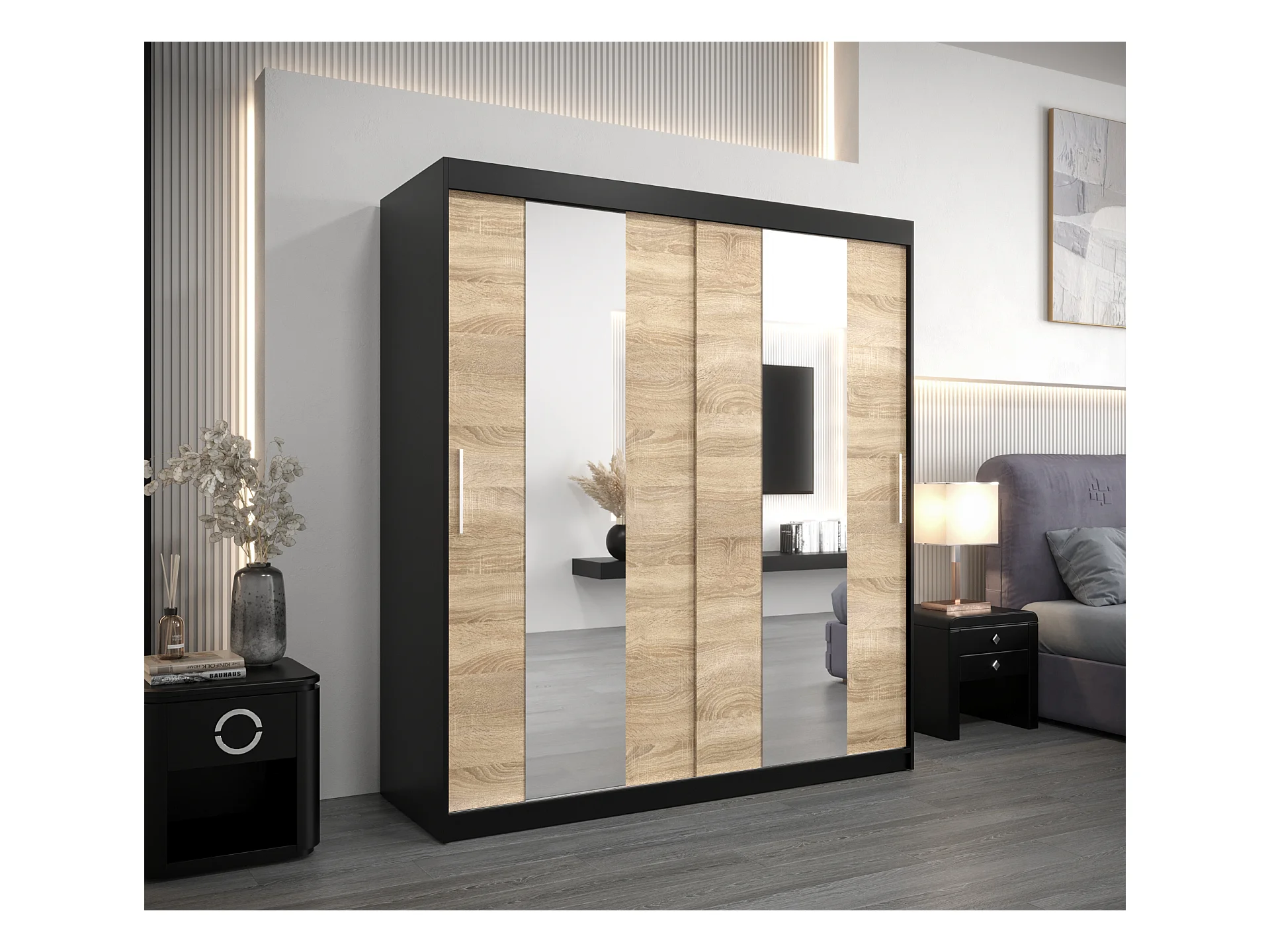 Schwebetürenschrank Pole 200/180/62 2-Türig (Schwarz/Sonoma)