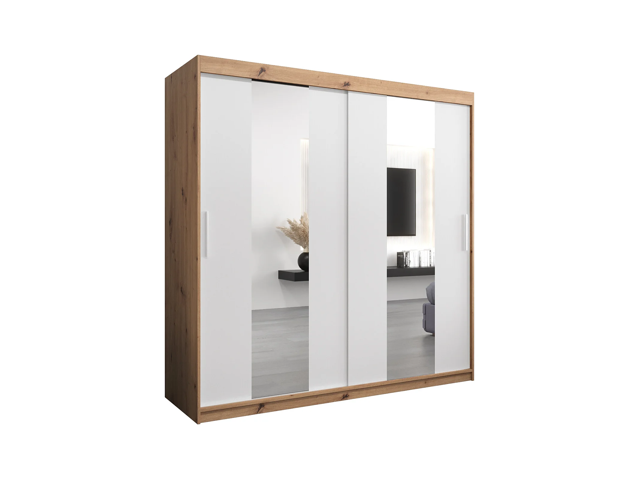 Schwebetürenschrank Pole 200/200/62 2-Türig (Artisan/Weiß)