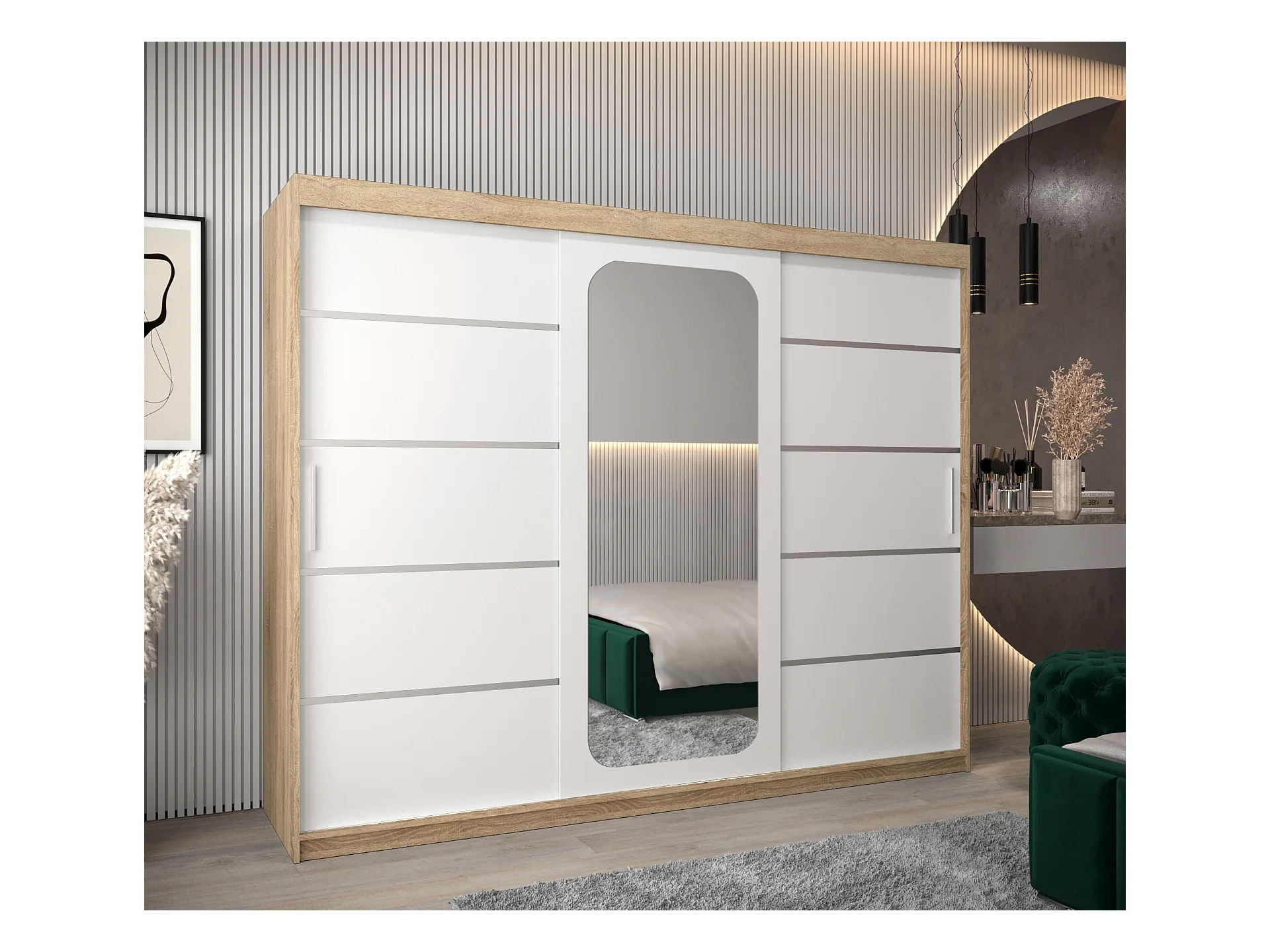 SCHWEBETÜRENSCHRANK PROMO V2 200/250/62 3-türig (Sonoma/Weiß)