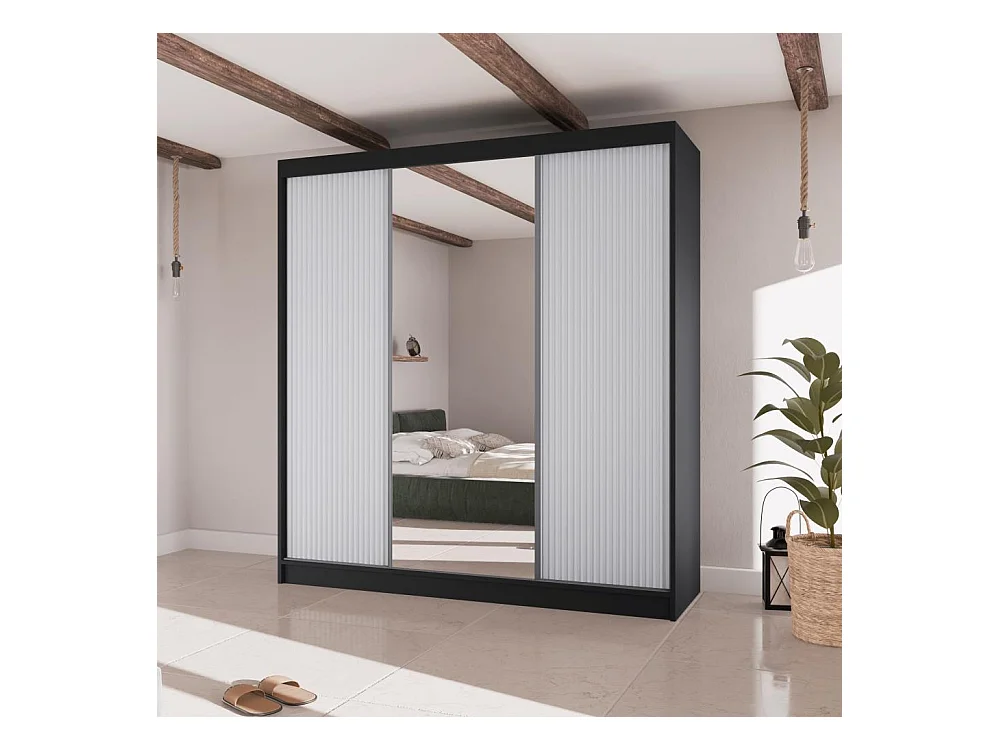 SCHWEBETÜRENSCHRANK Ramos II 200/61/215 schwarz+weiß