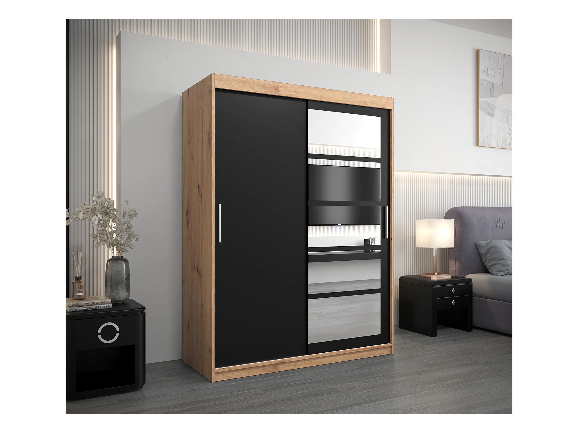 Schwebetürenschrank Roma 200/150/62 2-Türig (Artisan/Schwarz)