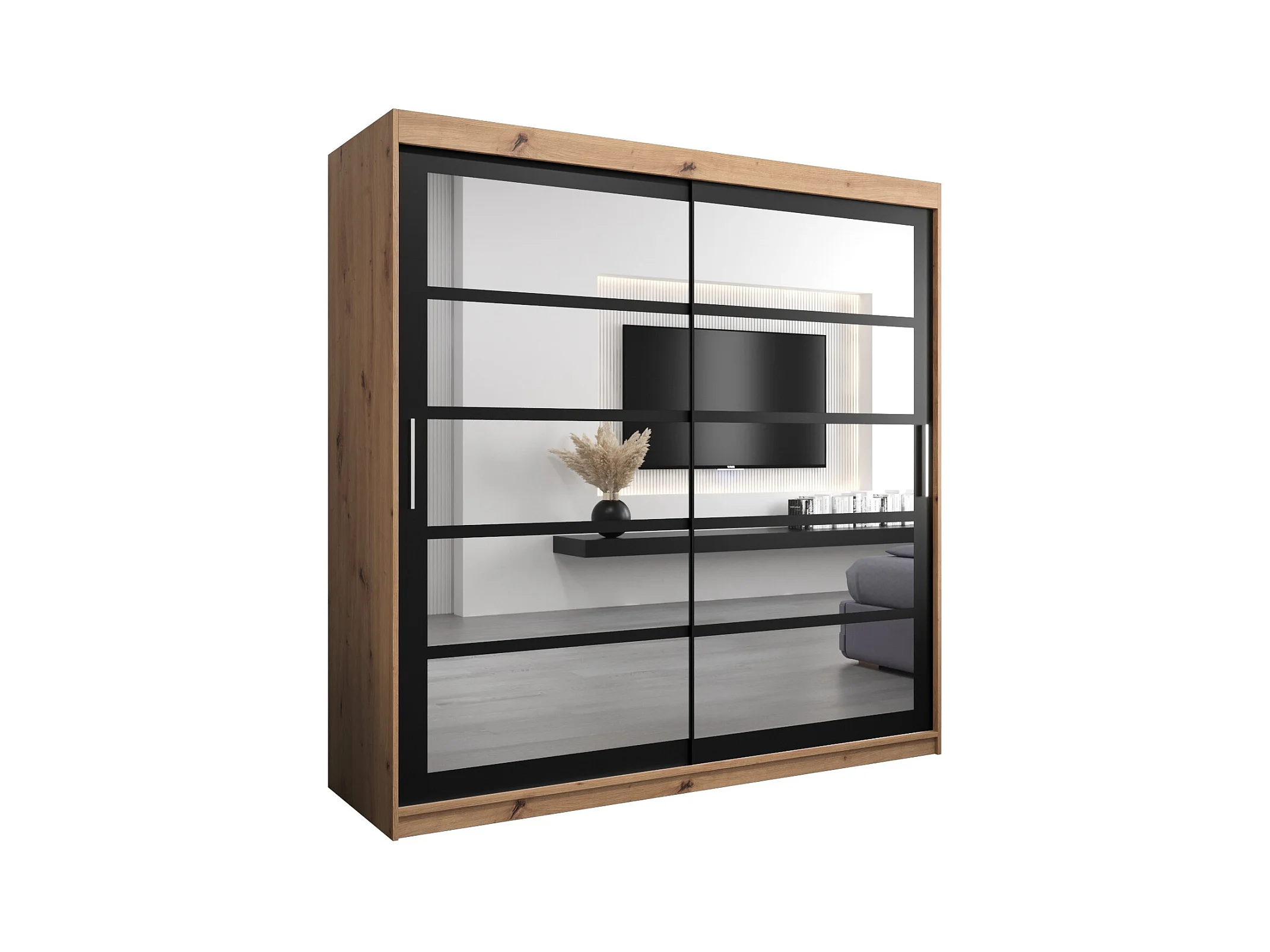Schwebetürenschrank Roma 200/200/62 2-Türig (Artisan/Schwarz)